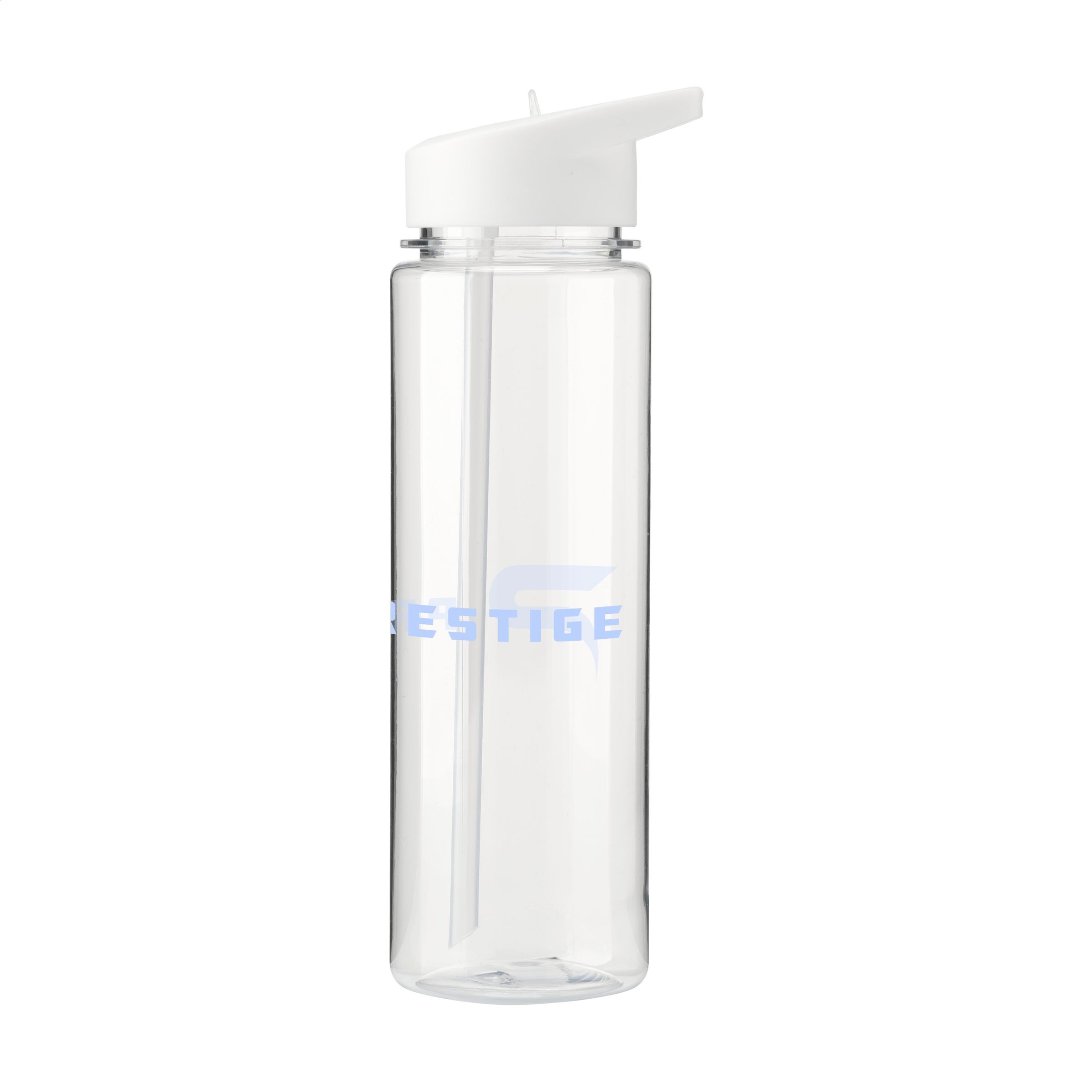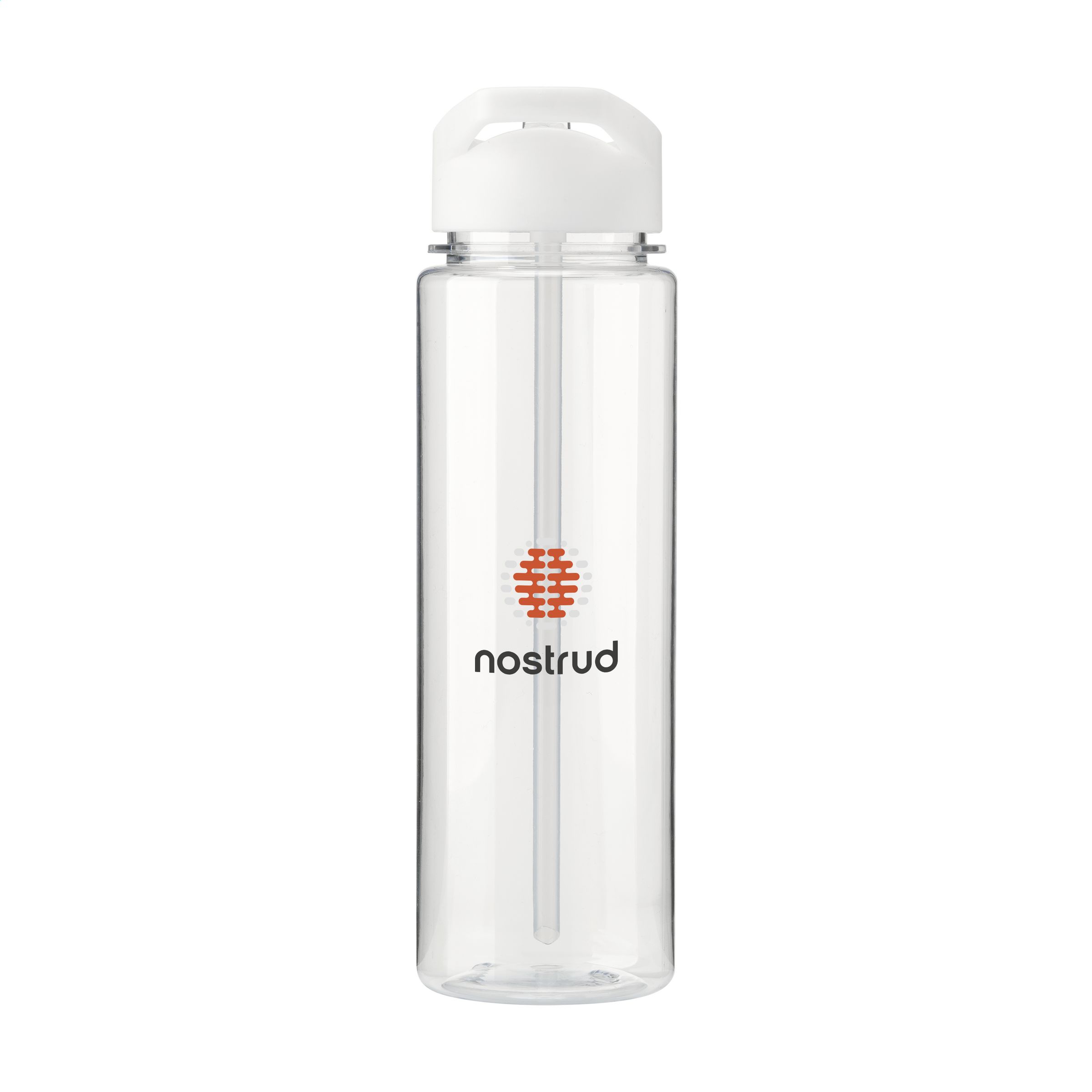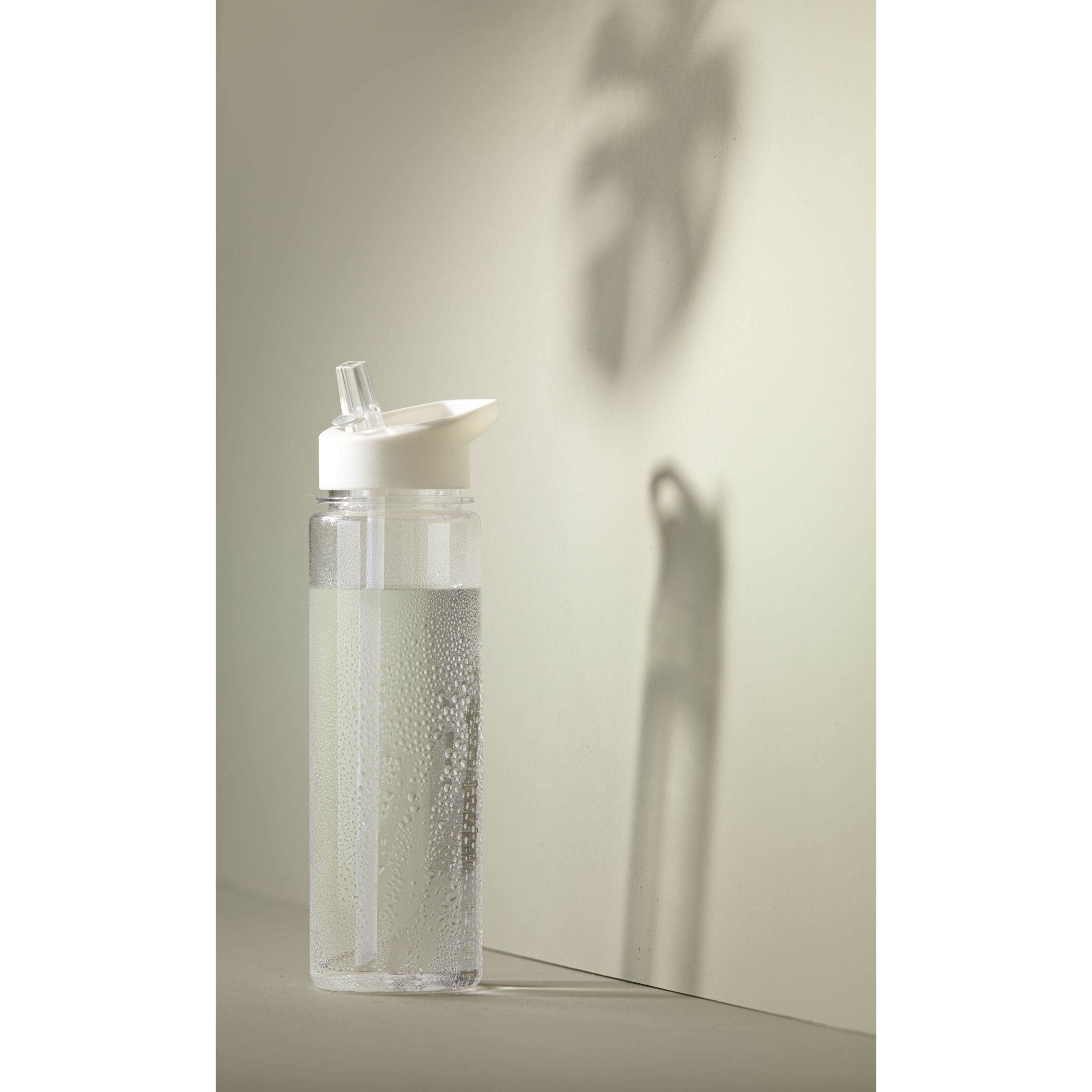 WoW! Wasserflasche mit transparentem Körper aus Tritan™ Renew from Eastman. Mit 50% recyceltem Material ohne Kompromisse bei der Qualität. Der Schraubverschluss verfügt über ein einklappbares Mundstück und einen verschließbaren Strohhalm. Beim Trinken kann man den Kopf gerade halten. So können Sie beim Fahren die Augen auf der Straße halten, während Sie trinken. Die Flasche lässt sich mühelos an einem Finger mitnehmen. Wiederverwendbar . auslaufsicher und BPA-frei. Nicht spülmaschinengeeignet. Fassungsvermögen: 650 ml. Pro Stück in einer Geschenkverpackung.