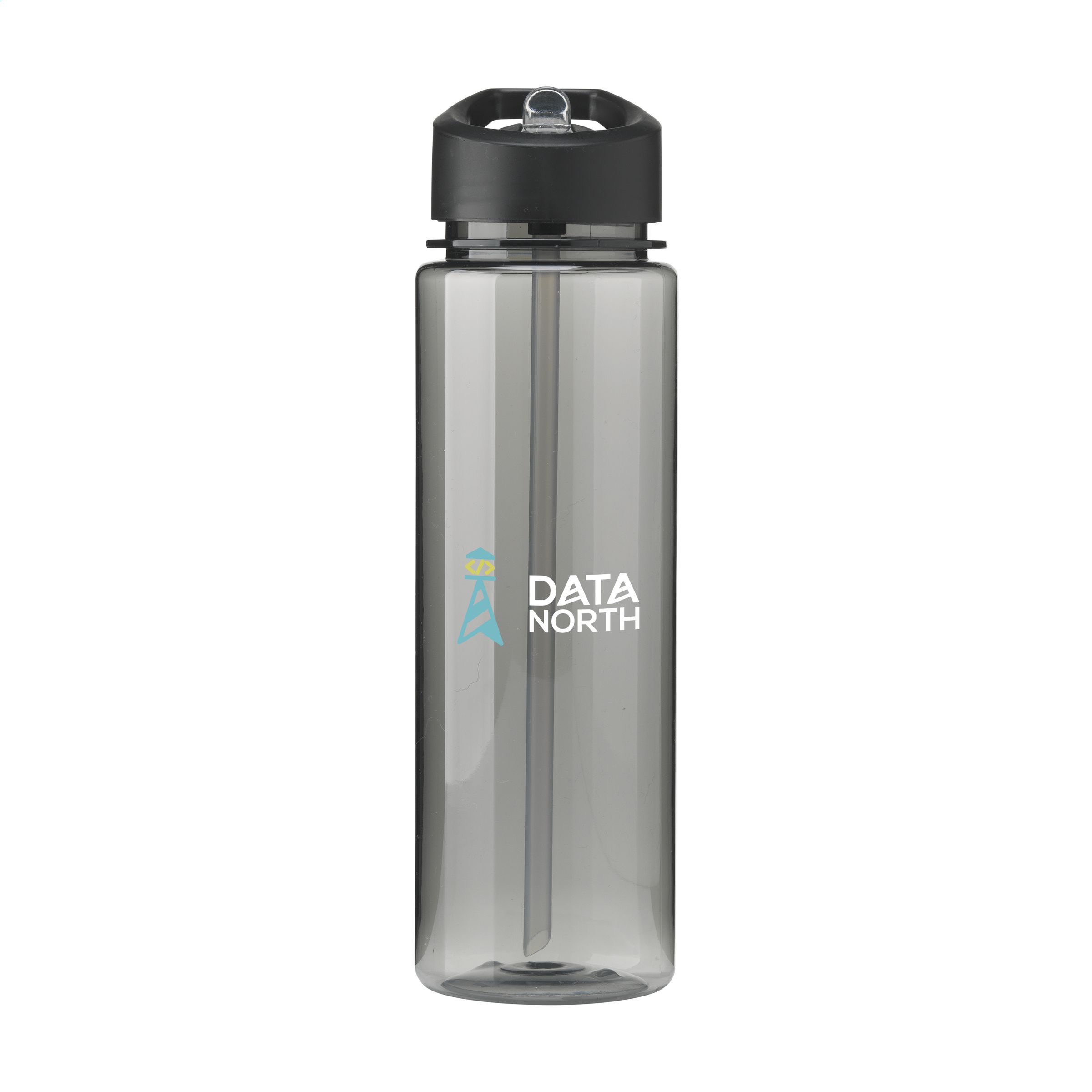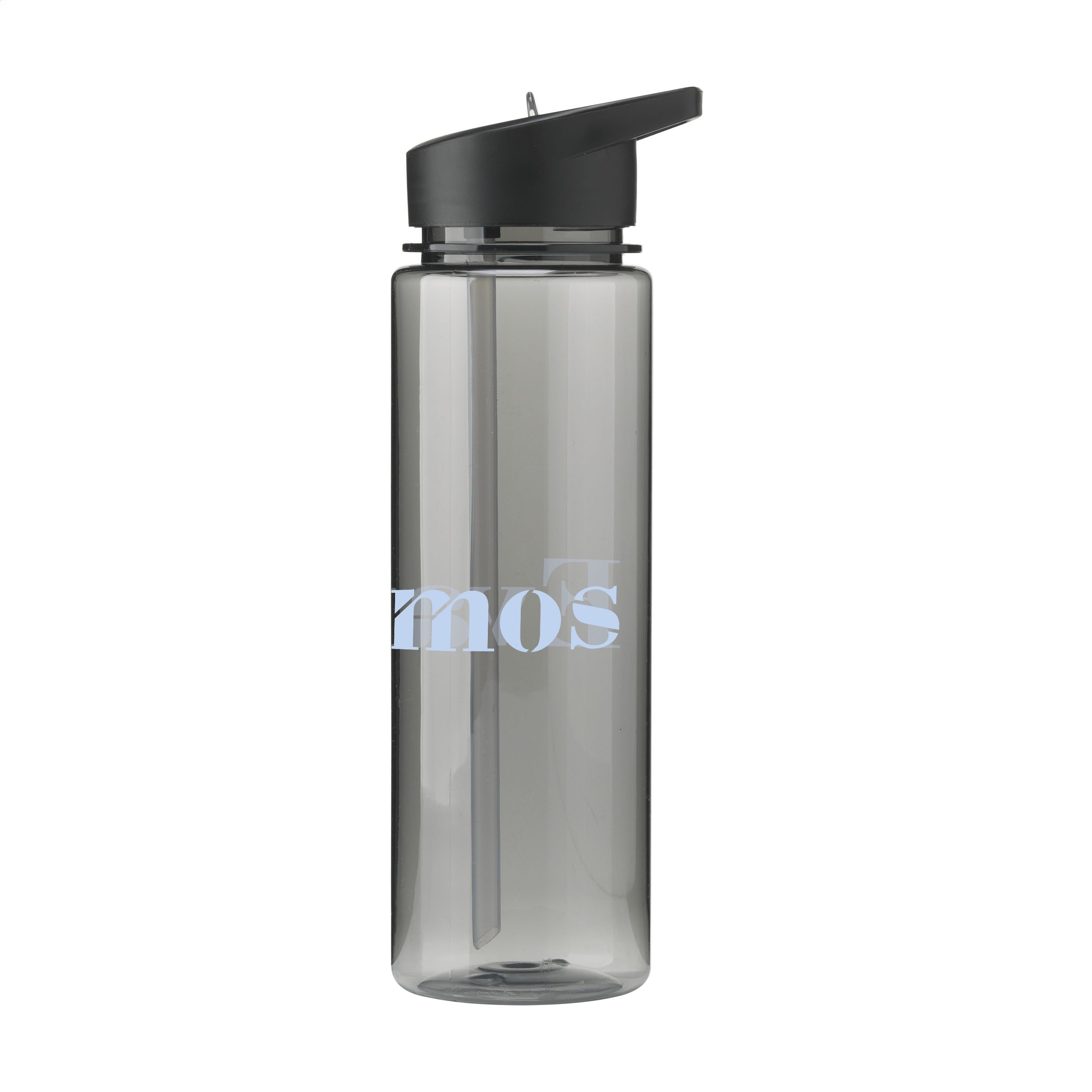 WoW! Wasserflasche mit transparentem Körper aus Tritan™ Renew from Eastman. Mit 50% recyceltem Material ohne Kompromisse bei der Qualität. Der Schraubverschluss verfügt über ein einklappbares Mundstück und einen verschließbaren Strohhalm. Beim Trinken kann man den Kopf gerade halten. So können Sie beim Fahren die Augen auf der Straße halten, während Sie trinken. Die Flasche lässt sich mühelos an einem Finger mitnehmen. Wiederverwendbar . auslaufsicher und BPA-frei. Nicht spülmaschinengeeignet. Fassungsvermögen: 650 ml. Pro Stück in einer Geschenkverpackung.