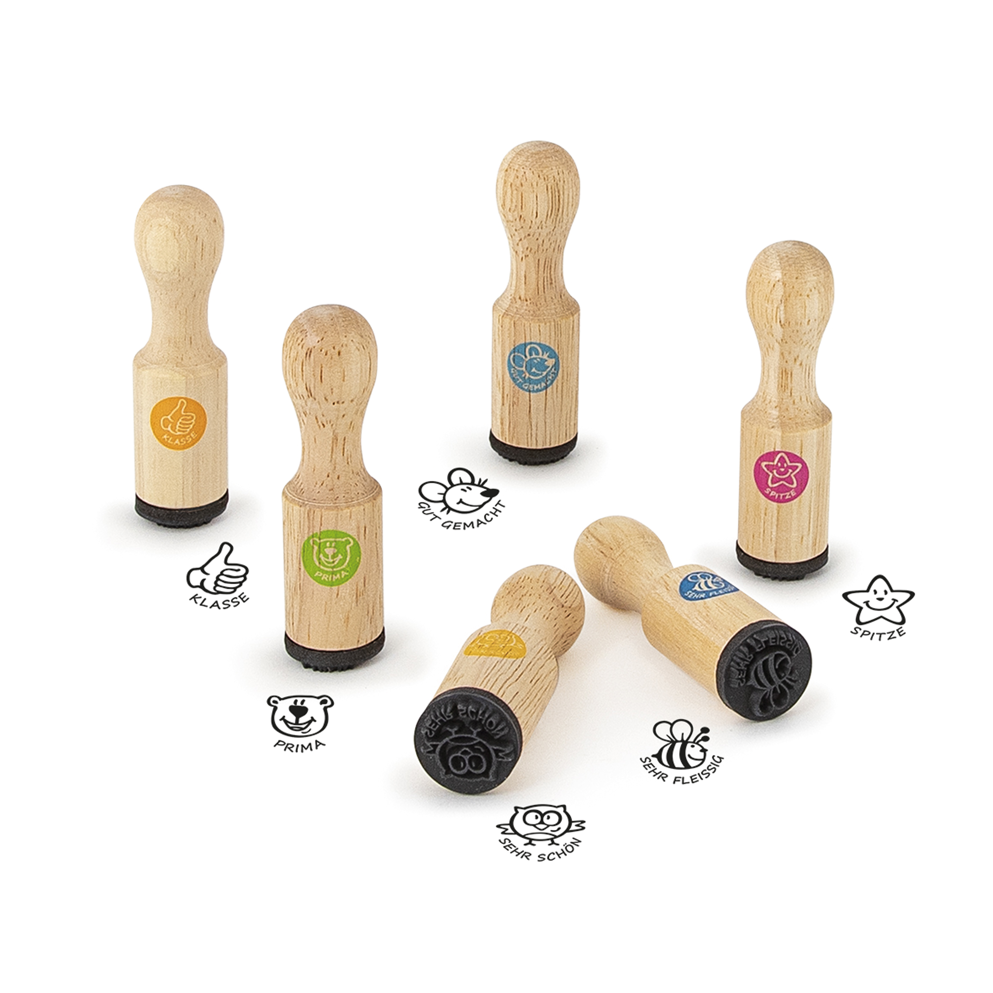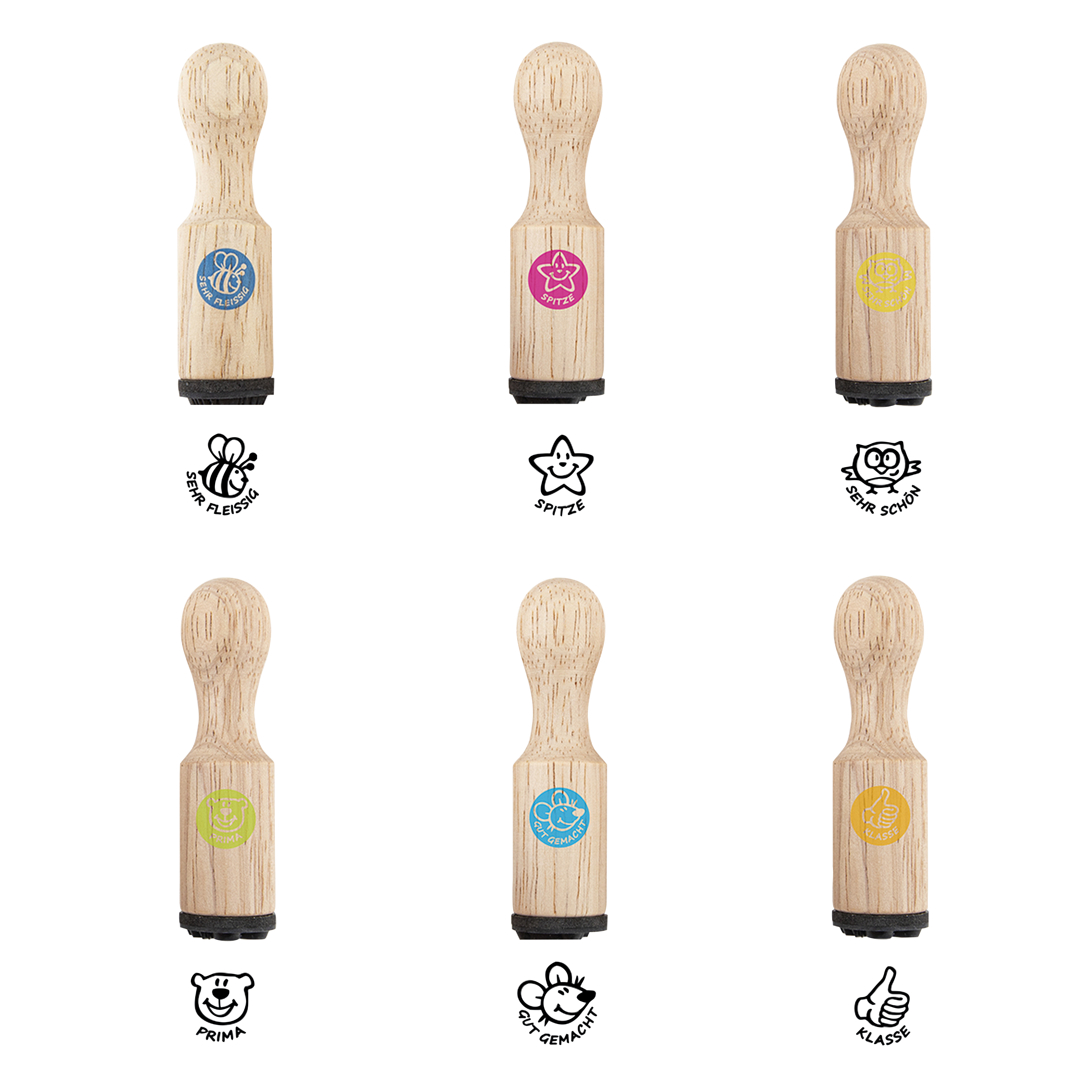 Diese hochwertigen Holzstempel sind ideal für Lehrer und Eltern, die Kinder mit farbenfrohen Motiven für tolle Leistungen belohnen und sie beim Lernen motivieren wollen. Die insgesamt 6 verschiedenen, kindgerechten Motive bieten hierbei eine vielfältige Auswahl.