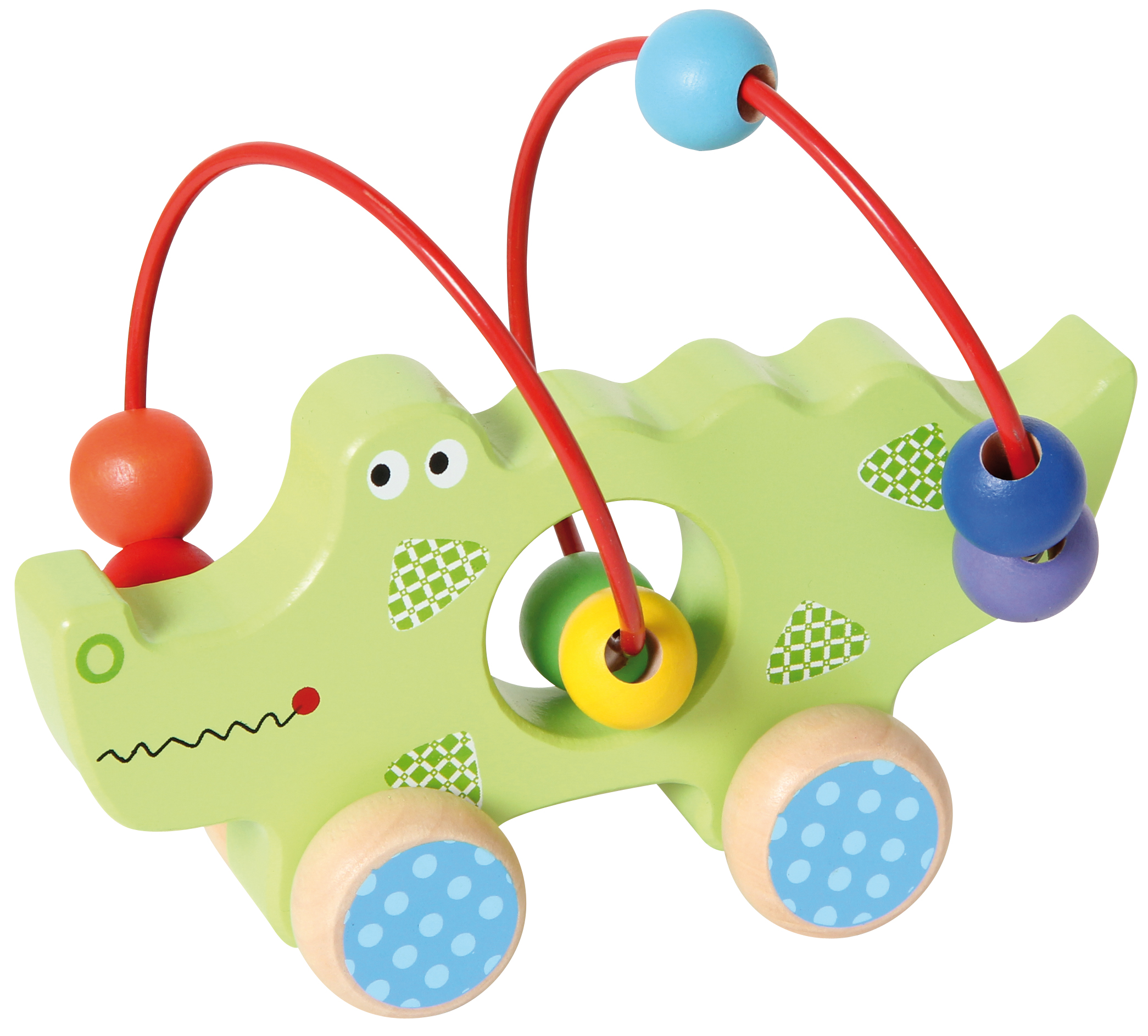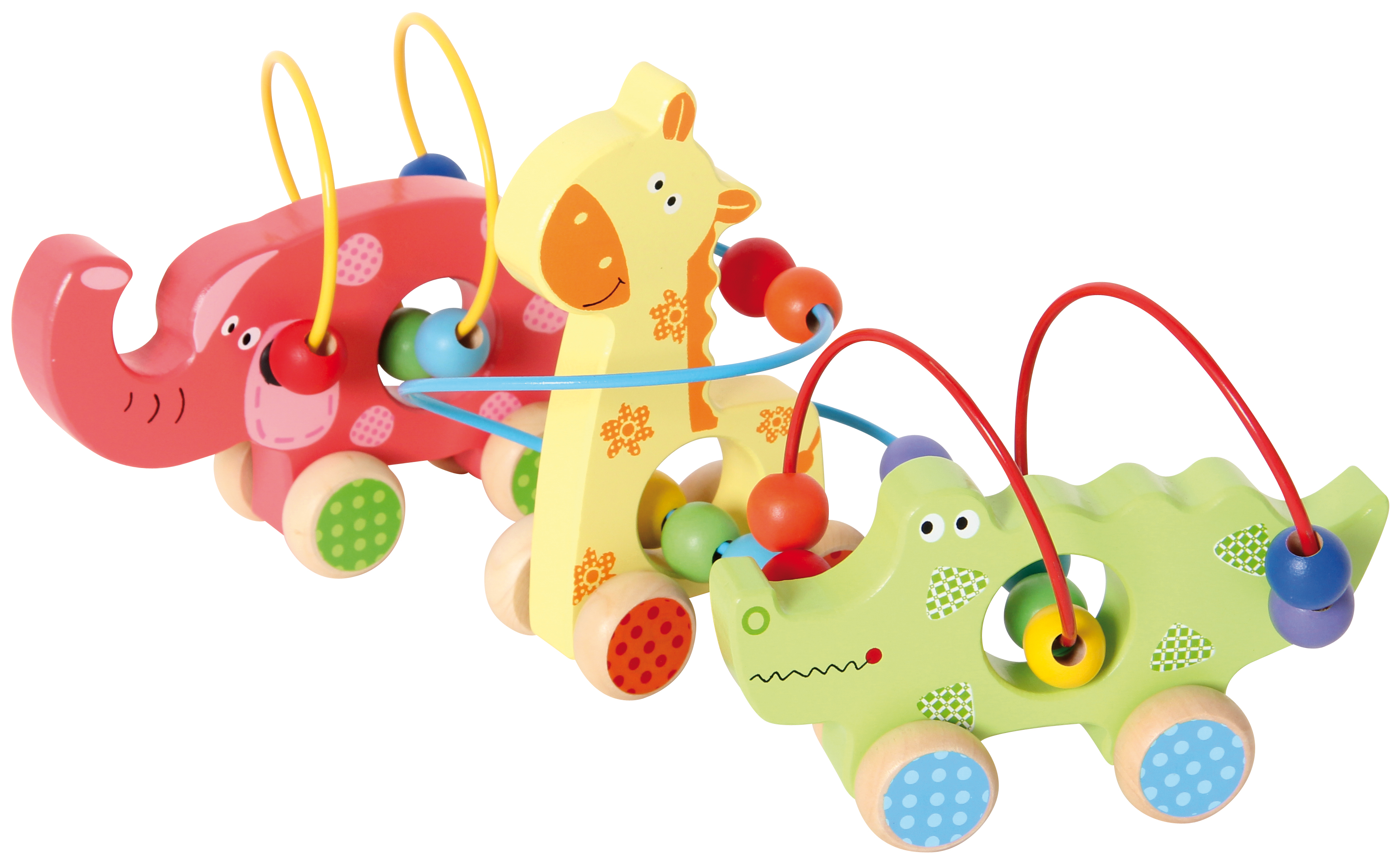 Motorikspiel, Greifling und Rolltier in einem. 3 Motive: Giraffe, Elefant und Krokodil.