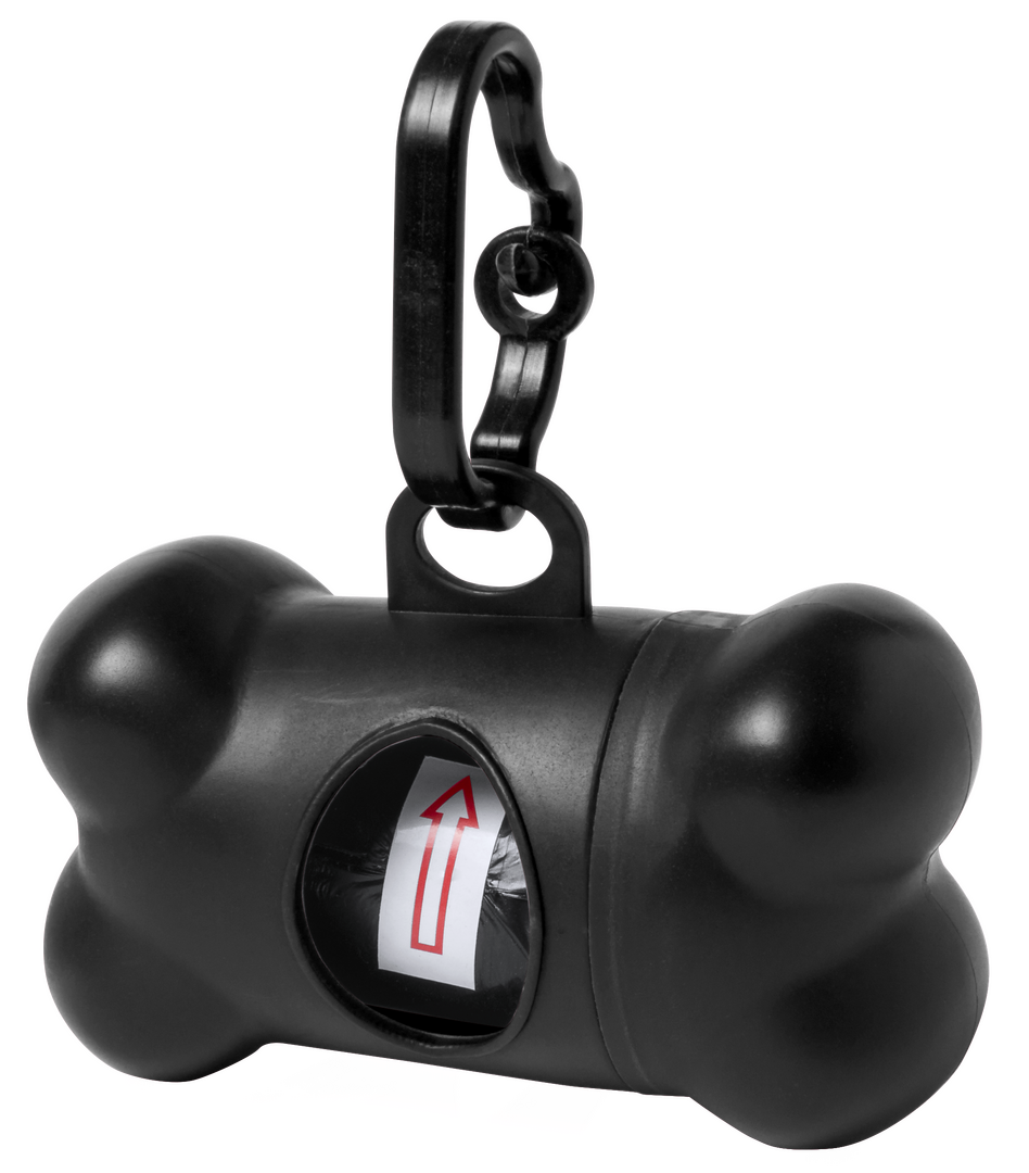 Beutelspender für Hundekot mit robustem Gehäuse in Knochenform und kräftigen Farben. Mit Befestigungskarabiner und 15 Beuteln.
