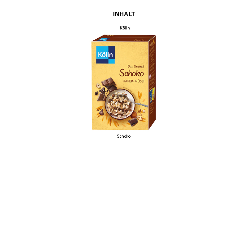 Müsli im Becher aus Karton, Werbeinleger aus Papier individuell bedruckt. Inhalt: Kölln Schoko Hafer-Müsli, 40 g (kann mit Milch im Becher zubereitet werden)