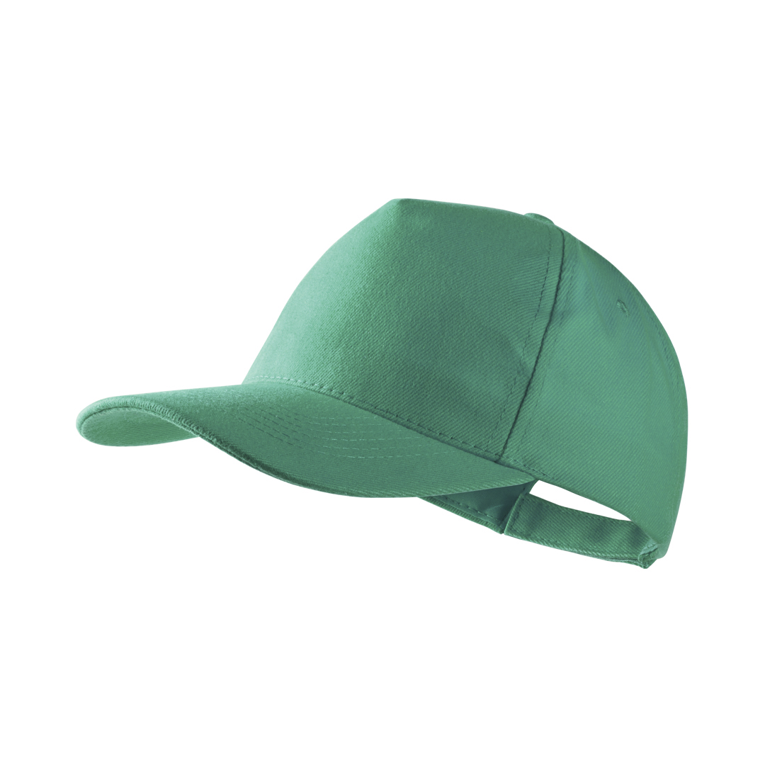 Kappe aus gekämmter Baumwolle. Sie bietet großen Komfort dank des gepolsterten Schirms und der umstickten Löcher für eine bessere Belüftung, mit einem praktischen verstellbaren Klettverschluss. Hergestellt mit 5 Paneelen und erhältlich in einer breiten Palette von Farben.