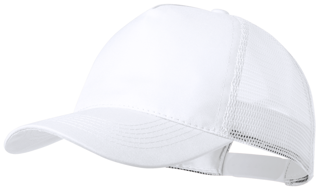 5-Panel-Kappe aus Polyester, mit Netzgewebe und verstellbarem Kunststoffverschluss. Erhältlich in einer breiten Palette von lebendigen Farben (weiße Farbe, die speziell für den Sublimationsdruck hergestellt wurde).