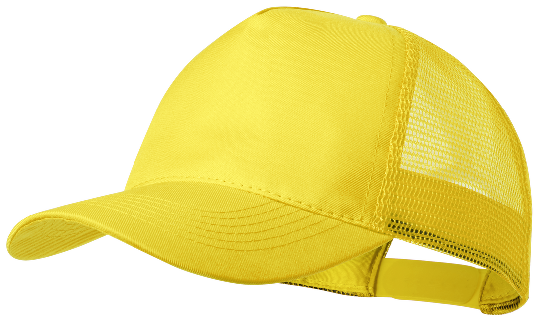 5-Panel-Kappe aus Polyester, mit Netzgewebe und verstellbarem Kunststoffverschluss. Erhältlich in einer breiten Palette von lebendigen Farben (weiße Farbe, die speziell für den Sublimationsdruck hergestellt wurde).