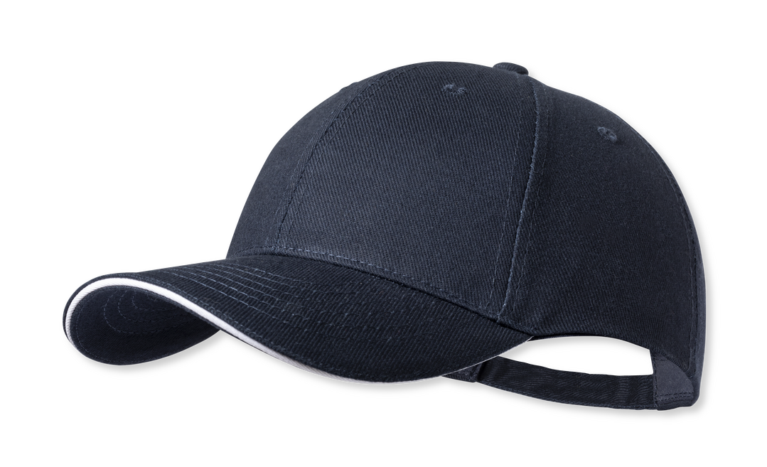 6-Panel-Kappe aus strapazierfähiger, gebürsteter Baumwolle mit 250 g / m². Mit Sandwich-Visier, gestickten Belüftungslöchern und Metallschnallenverschluss.