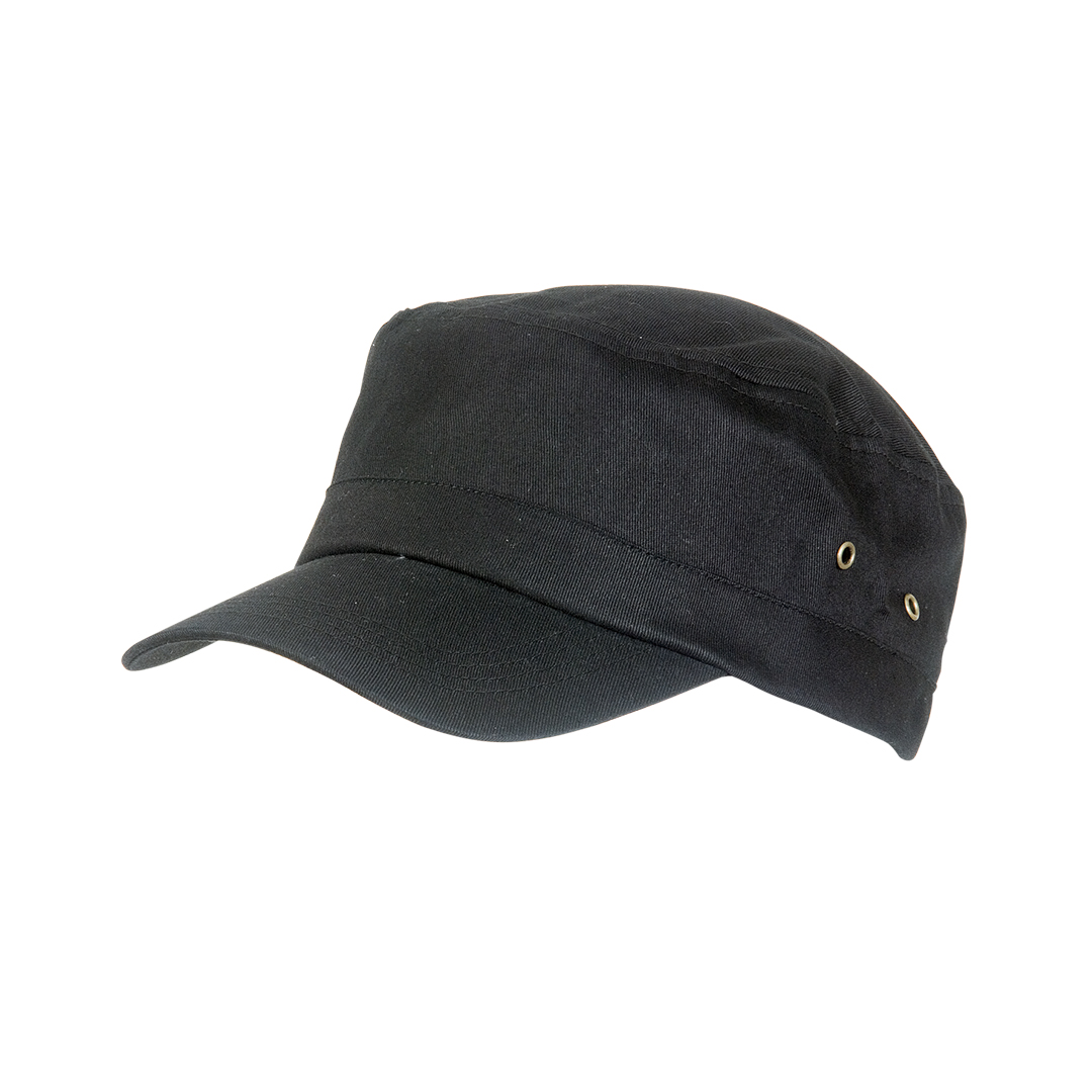 Kappe im Militär-Stil aus gekämmter Baumwolle in schlichten Farben. Mit seitlichen, mit Metallösen verstärkten Belüftungsöffnungen und verstellbarem Klettverschluss.