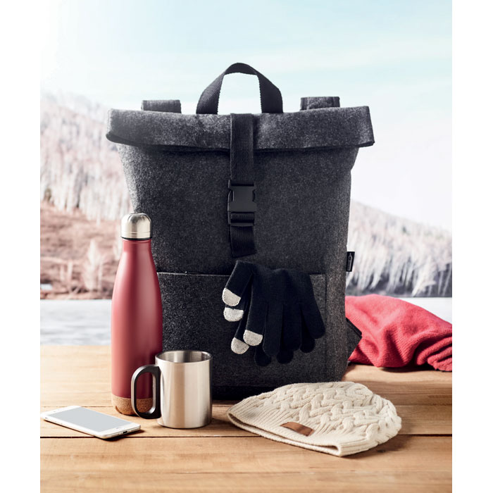 Mütze im Zopfstrickmuster aus RPET. Mit Label zur Werbeanbringung.