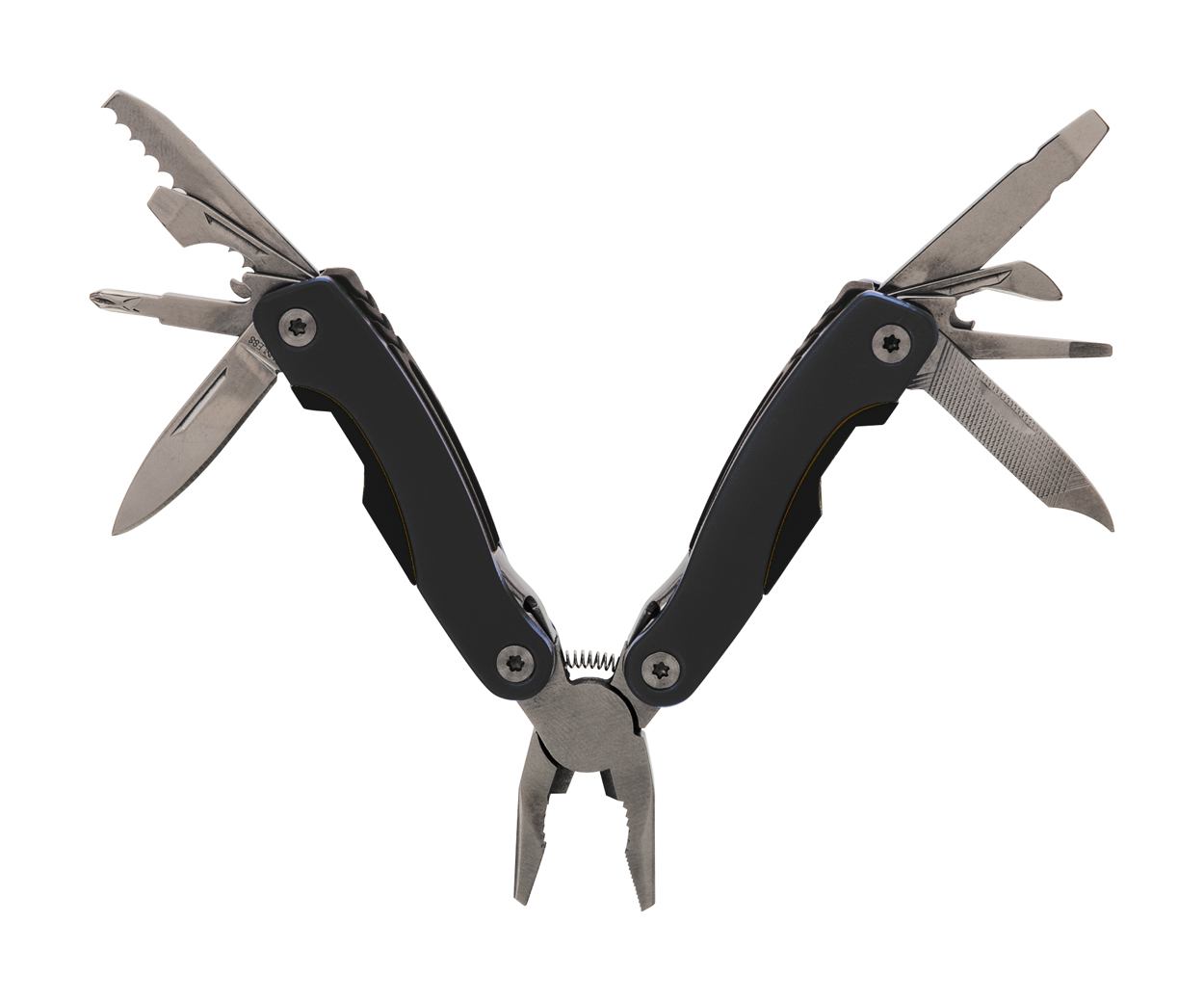 Multitool aus Edelstahl mit 12 Funktionen. Einzeln im Polyester-Etui.