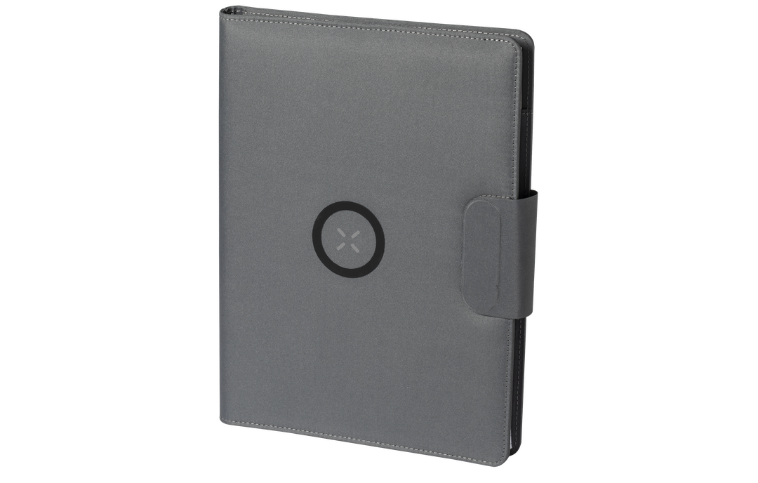 Multifunktionaler Ordner / Notizblock aus 300D RPET-Polyester, hergestellt aus recyceltem Kunststoff, der die Wiederverwendung von Kunststoffabfällen fördert und zur Nachhaltigkeit unseres Planeten beiträgt. Mit Magnetverschluss und RPET-Etikett im Inneren. In die Hülle integriertes kabelloses 10-W-Ladegerät mit Magnetverschluss, um das Gerät während des Ladens zu benutzen, und mit Klebering, kompatibel mit allen Geräten mit Magsafe- und Qi-Technologie. Integrierter Akku mit 5.000 mAh Ladekapazität, mit Typ-C-Eingangs- / Ausgangsanschluss und LED-Ladestatusanzeige, inklusive Kabel. Innen mit Smartphone-Halterung und verschiedenen Kartenfächern, einschließlich Stifthalter und A4-Notizblock mit 20 Blatt Einstreifen-Layout. Präsentiert in einer attraktiven Designbox. Alle unsere externen Zusatzbatterien haben eine reale Kapazität und bestehen aus nicht recycelten Batterien der Klasse A mit einer Lebensdauer von mindestens 500 Ladezyklen, die den CE-Vorschriften entsprechen. Darüber hinaus werden sie gemäß den RoHS-Normen und unter Einhaltung der folgenden Sicherheitsanforderungen hergestellt: Überladungsschutzsystem der Powerbank. Vollständiges Entladeschutzsystem, das die Lebensdauer der Powerbank erhöht. Blockiersystem zur Vermeidung von Kurzschlüssen. Konstantes Ladetransfersystem, entsprechend der Kapazität des Zielgeräts.