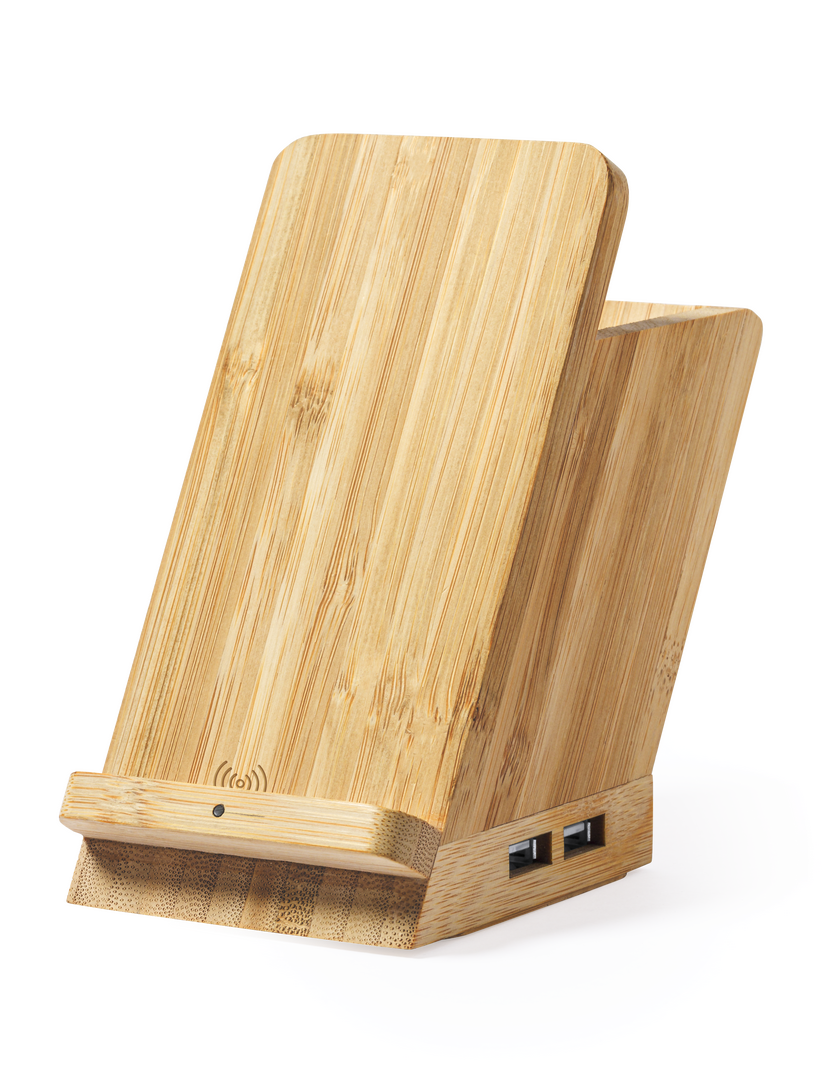 4 in 1 Multifunktionsbleistift der Liene "Natur" aus Bambus. Mit Stiftfunktionen, Smartphone-Halter, kabellosem 5W-Ladegerät und USB-Anschluss (4xUSB 2.0). Kompatibel mit Smartphones mit kabelloser Ladetechnologie. Inklusive 1 Meter langem weißem Micro-USB-Kabel. Präsentiert in einer attraktiven Öko-Designbox. Bedienungsanleitung in Spanisch und Englisch verfügbar.