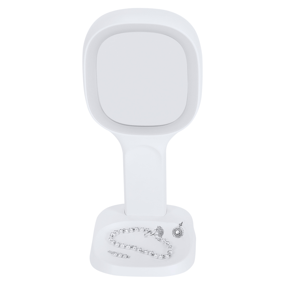 Multifunktions-Spiegel mit vielseitigen Funktionen:- Ein 1x-Spiegel auf der einen Seite und ein 5x- Vergrößerungsspiegel auf der anderen Seite.- 15W kabelloser Ladegerät.- Smartphone-Halter.- Fach für kleine Gegenstände. Hergestellt gemäß RoHS-Standards und in Übereinstimmung mit den folgenden Sicherheitsanforderungen:Überhitzungsschutzsystem. Schutzsystem gegen Überladung. Blockiersystem zur Vermeidung von Kurzschlüssen.