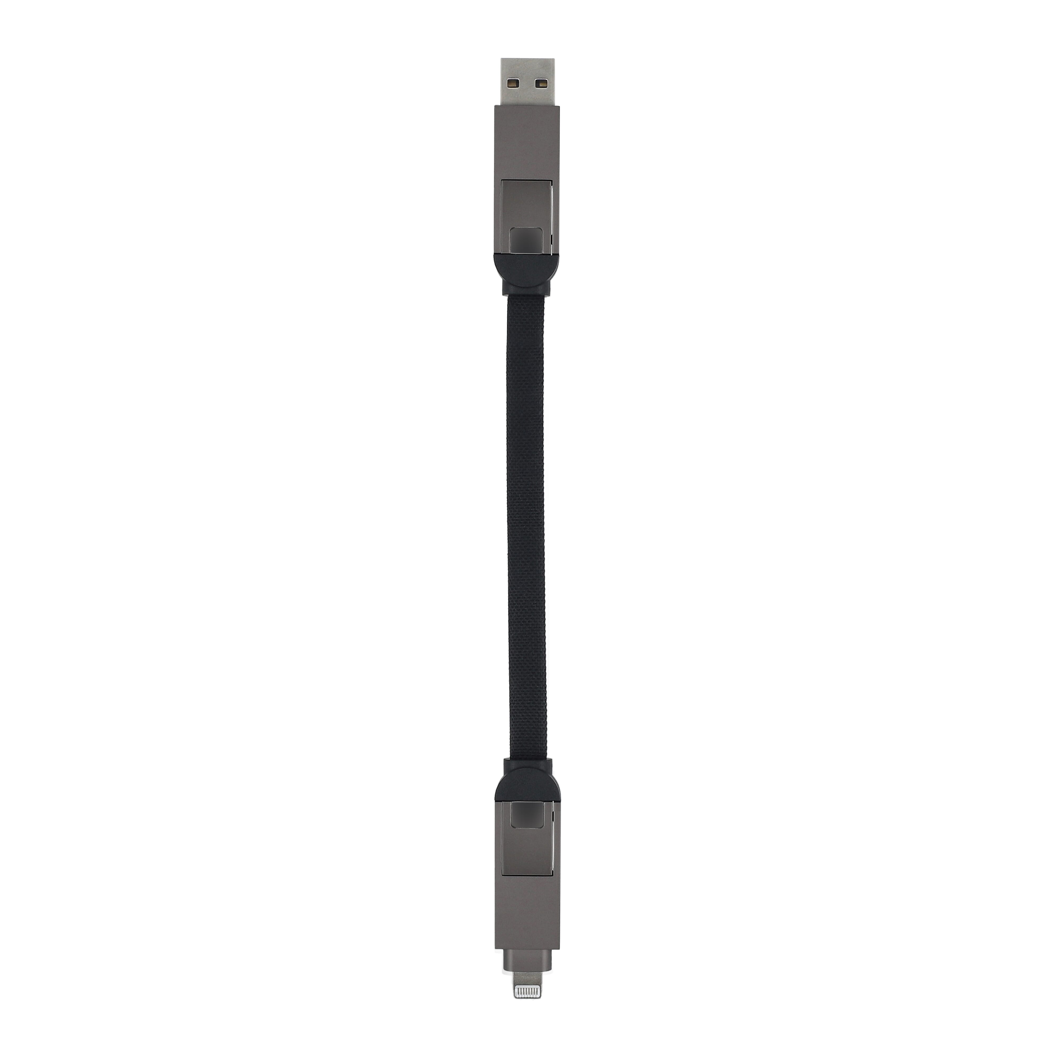 Dieses vielseitige Kabel bietet USB-A- und USB-C-Eingänge sowie USB-C- und Lightning-Ausgänge. Es unterstützt PD und QC und ist aus langlebigem, geflochtenem Nylon. Der Magnetverschluss sorgt für Ordnung – ideal für unterwegs.