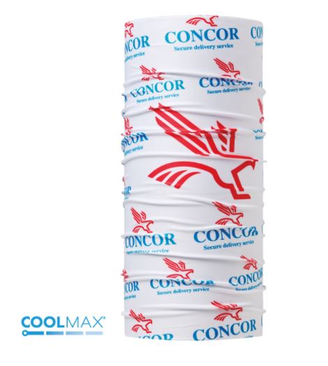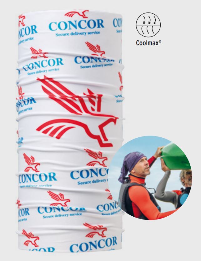 Leichter Multifunktions-Rundschal aus COOLMAX®, Grundfarbe Weiß. Das Material bietet einzigartige Produkteigenschaften bei Bekleidung. Der Multifunktions-Schal absorbiert Feuchtigkeit besonders gut von der Haut, trocknet schnell und die Polygiene®-Ausstattung verhindert Geruchsbildung. Das Material ist angenehm weich und leicht. Durch seine Länge kann der Rundschal bequem auch doppellagig benutzt werden, was die Funktionalität erhöht. Der Artikel wird komplett allover nach Ihren Vorgaben außen bedruckt. Sie stellen das Design als vektorisierte Datei bei. Material: COOLMAX®, Größe ca. 50 x 25 cm. Einzeln verpackt im Polybeutel.
