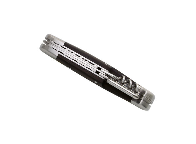 Multifunktionsmesser aus hochfesten Edelstahl-Komponenten (2CR13). Griff aus schwarzem Stamina-Holz. Zwei geschmiedete Heftbacken aus Edelstahl. Verzierte Feder. Sieben Funktionen: Messer, Dosenöffner, Flaschenöffner, Kreuzschlitzschraubendreher, Edelstahl-Korkenzieher, 2 Flaschenschraubendreher. Wird mit einem melierten grauen Etui aus RPET geliefert. Die Vorteile in Kürze: - Elemente aus 2CR13- Edelstahl für hervorragende Beständigkeit gegen Oxidation und Verwindungen. - Verzierte Feder und geschmiedete Heftbacken für eine hochwertige Verarbeitung und eine größere Wiederstandfähigkeit. - Wird in einem Etui aus RPET (recycelte Verpackung) geliefert, anstatt einer wegwerfbaren Kartonverpackung.
