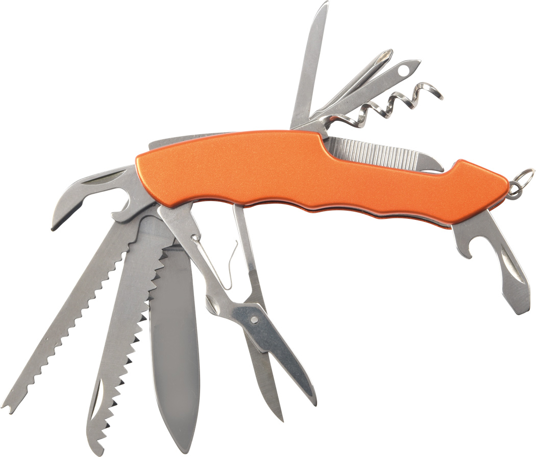 Taschenmesser ALL TOGETHER, 11-teilig: mit Schere, Messer, 1 große und 1 kleine Säge, Dosenöffner, Flaschenöffner, Korkenzieher, Nagelfeile, Ahle, Lochstecher und Schraubendreher, in Geschenkbox