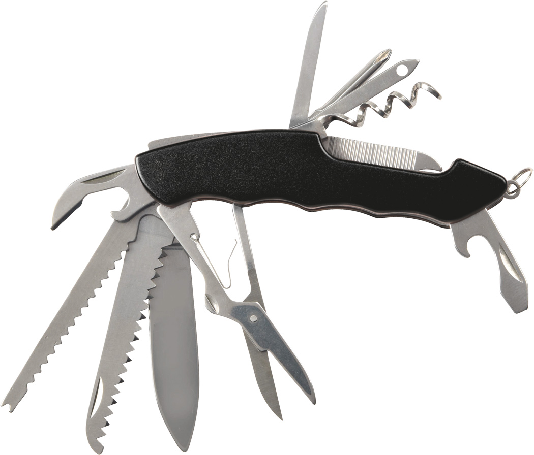 Taschenmesser ALL TOGETHER, 11-teilig: mit Schere, Messer, 1 große und 1 kleine Säge, Dosenöffner, Flaschenöffner, Korkenzieher, Nagelfeile, Ahle, Lochstecher und Schraubendreher, in Geschenkbox