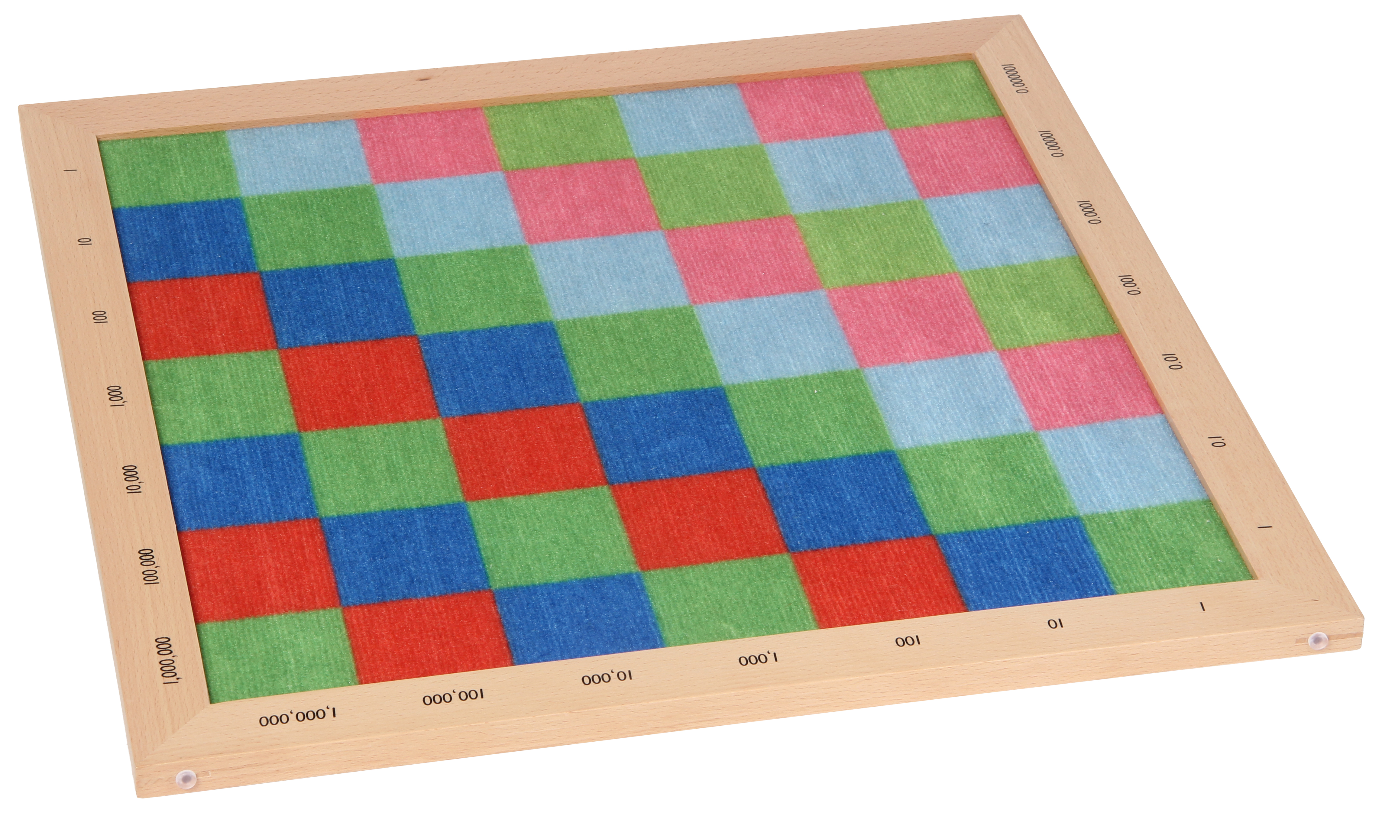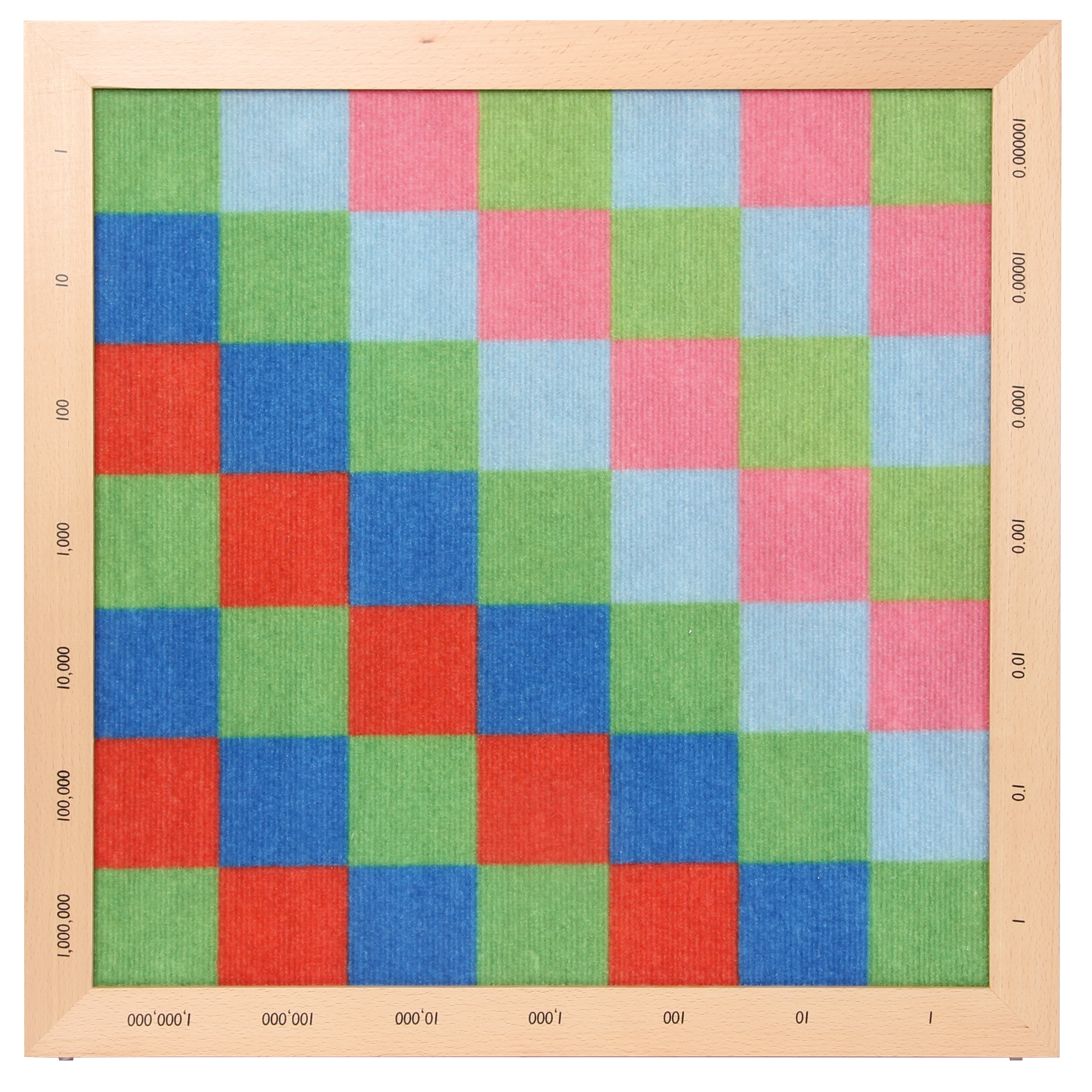Mit dem Multiplikationsbrett aus Holz üben Kinder größere Multiplikationsaufgaben mit Dezimalbrüchen. Ein Dezimalbruch ist ein Zehnerbruch (z. B. 35/100). Sein Nenner ist eine Potenz von Zehn mit einer natürlichen Zahl als Exponen. Selbstkontrolle durch Abzählen und Vergleichen. Zum Arbeiten benötigt man den Kasten mit Perlenstäbchen, Art.-Nr. 109582, sowie den Kasten mit nummerierten Marken, Art.-Nr. 109583. Größe: 56 x 56 x 2 cm.
