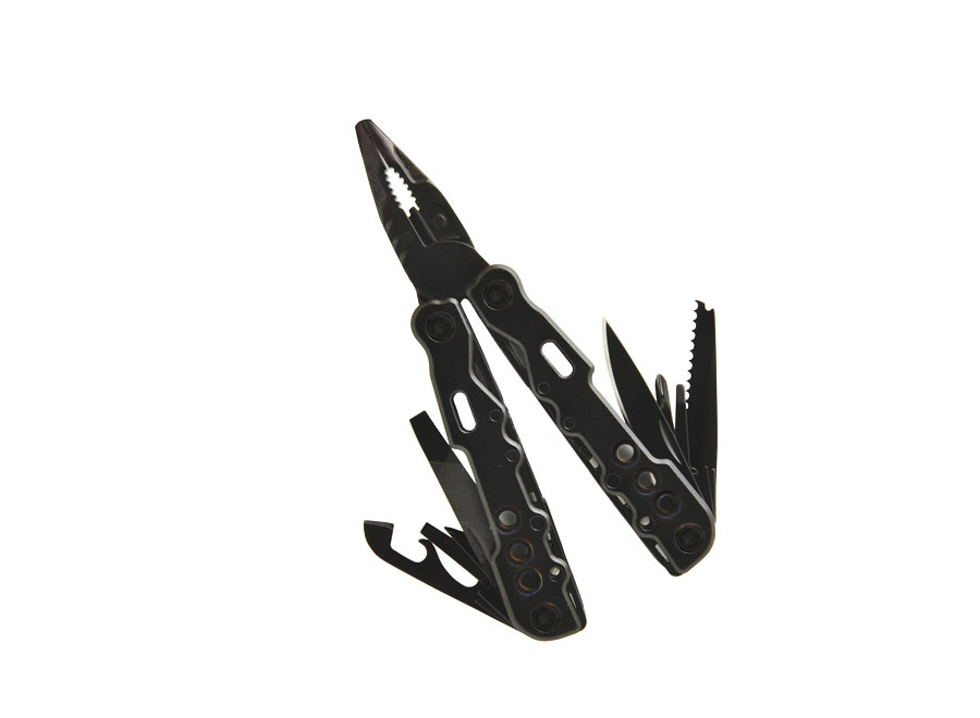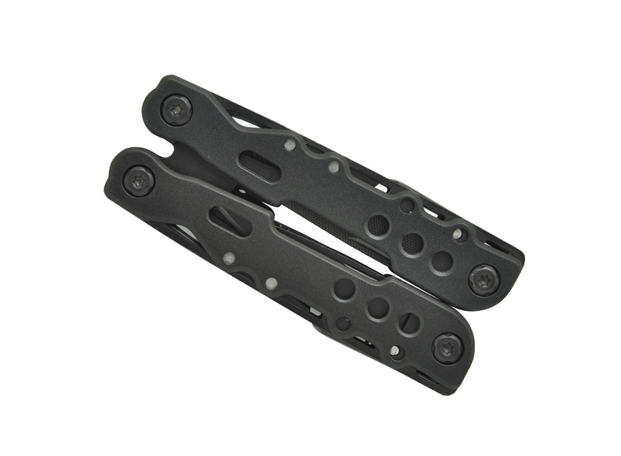 Professionelle Multifunktionszange aus hochfestem Edelstahl (2CR13). Griff aus Edelstahl. Montage mit Torx-Schrauben. Neue Generation der Sicherheitsverriegelung (einfaches Entriegeln). 12 Funktionen: Universalzange, Seitenschneider, Messer, Feile, Dosenöffner, Flaschenöffner, Säge, Mini-Stanzwerkzeug, 3 verschiedene Größen von Schlitzschraubendrehern, Kreuzschlitzschraubendreher. Rockwell-Härte: 48 Grad. Wird mit einer Gürteltasche aus Nylon geliefert. Die Vorteile in Kürze: - Verwendung von 2CR13-Edelstahl für eine hervorragende Beständigkeit gegen Oxidation und Verwindungen. - Sicherheitsverriegelung aller Elemente mit vereinfachter Ergonomie. - Torx-Schrauben-Montage, um Reibung beim Öffnen zu reduzieren und die langfristige Funktionsfähigkeit zu erhalten. - Wird in einer Gürteltasche mit breiter Schlaufe geliefert, die sich an Gürteln anpassen kann.