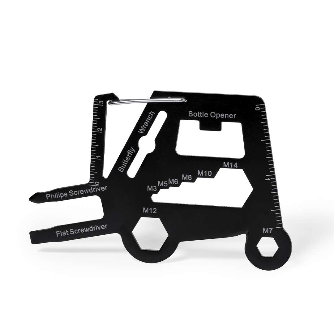Praktisches und ausgefallenes Multitool aus Edelstahl in Form eines mechanischen Bullen. Mit 16 Funktionen, unter anderem: Schlitz- und Kreuzschlitzschraubendreher, Sechskantschlüssel in verschiedenen Größen, Lineal, Dosenöffner und Flaschenöffner. Darüber hinaus verfügt es über einen Karabiner für den einfachen Transport. Präsentiert in einer recycelten Papiertüte.