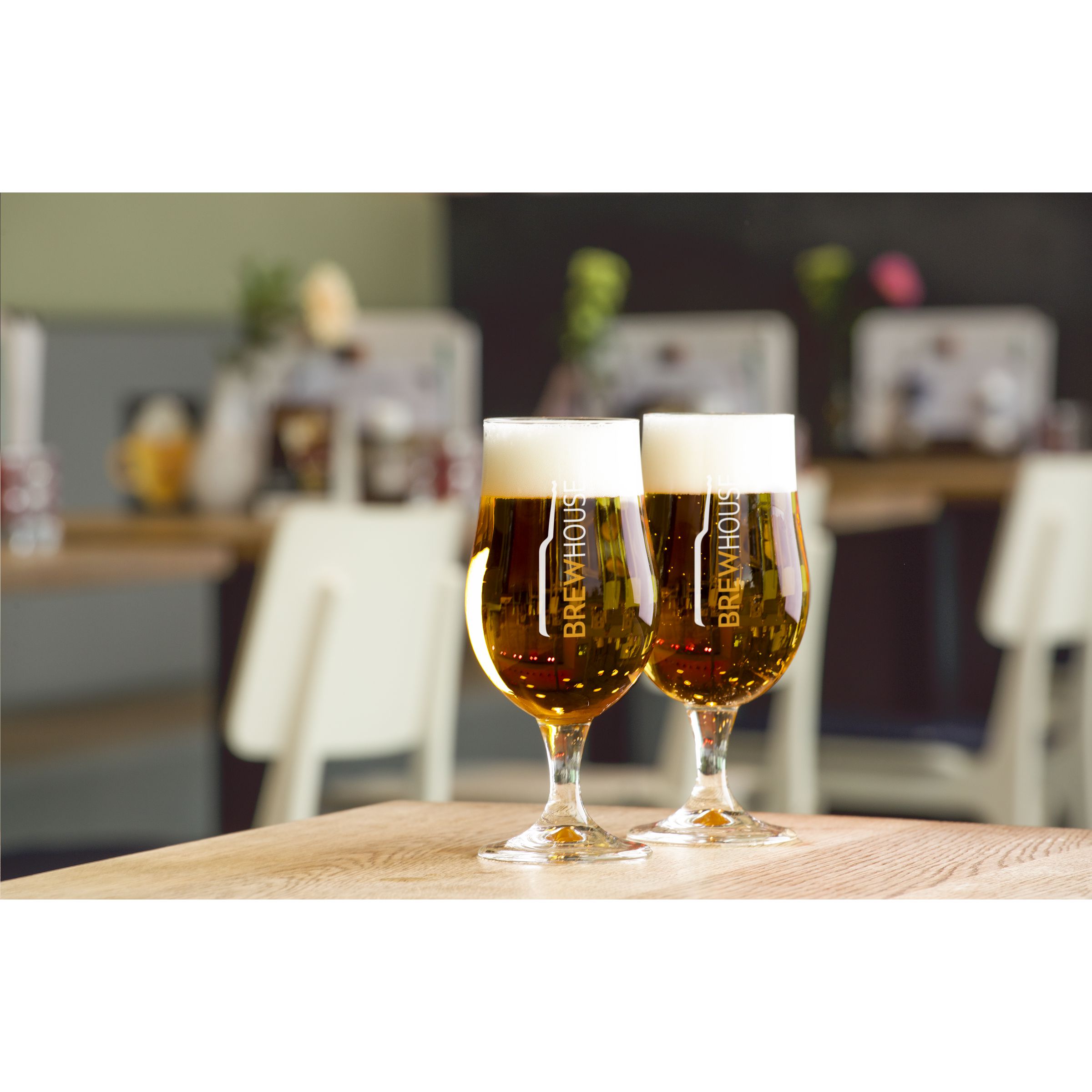 Hohes Bierglas mit Standfuß. Fassungsvermögen 370 ml. Hergestellt in Europa.