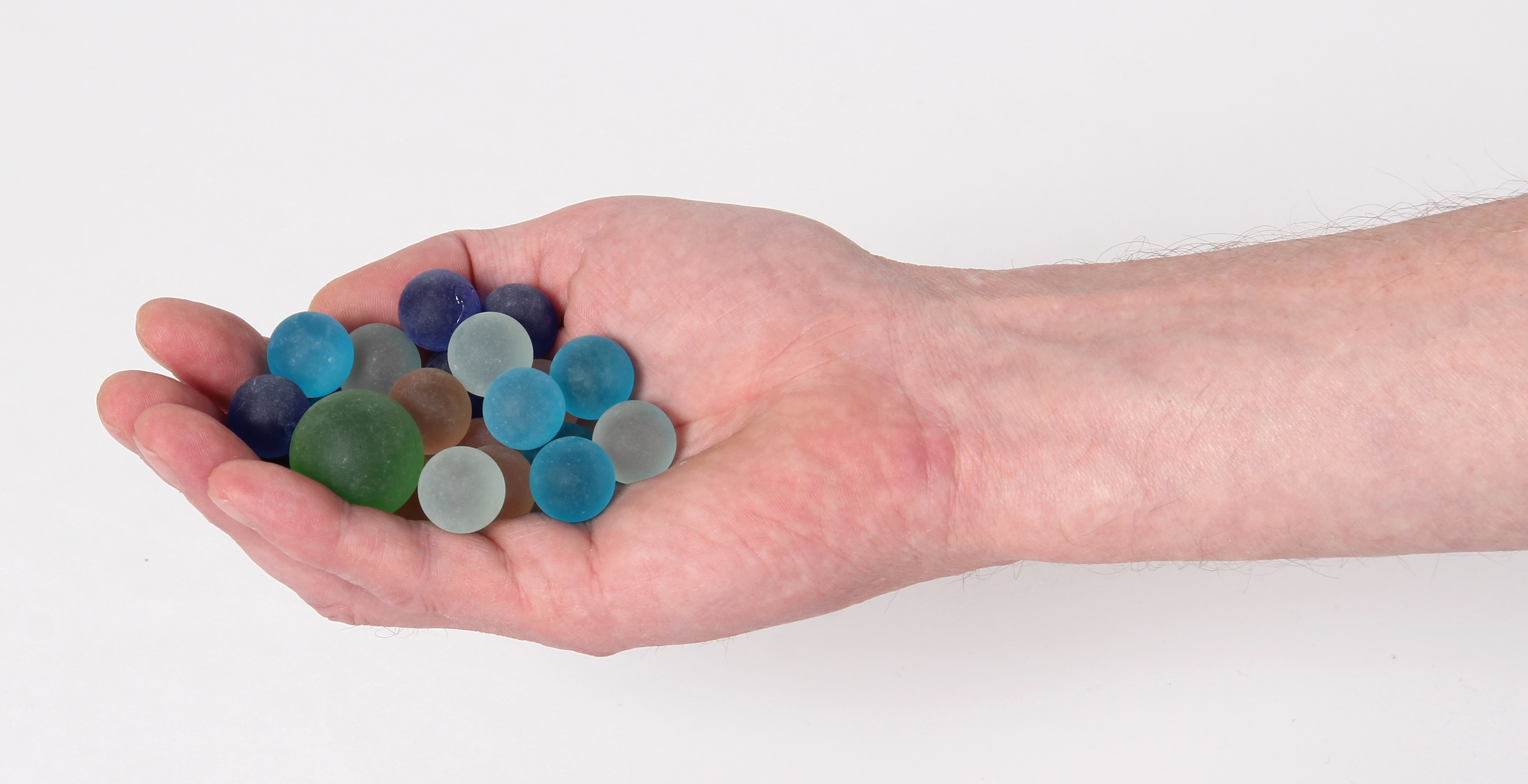 20 kleine (D 16mm) und eine große (D22mm) Murmel im Netz. Toll zum Dekorieren. Aus Glas.