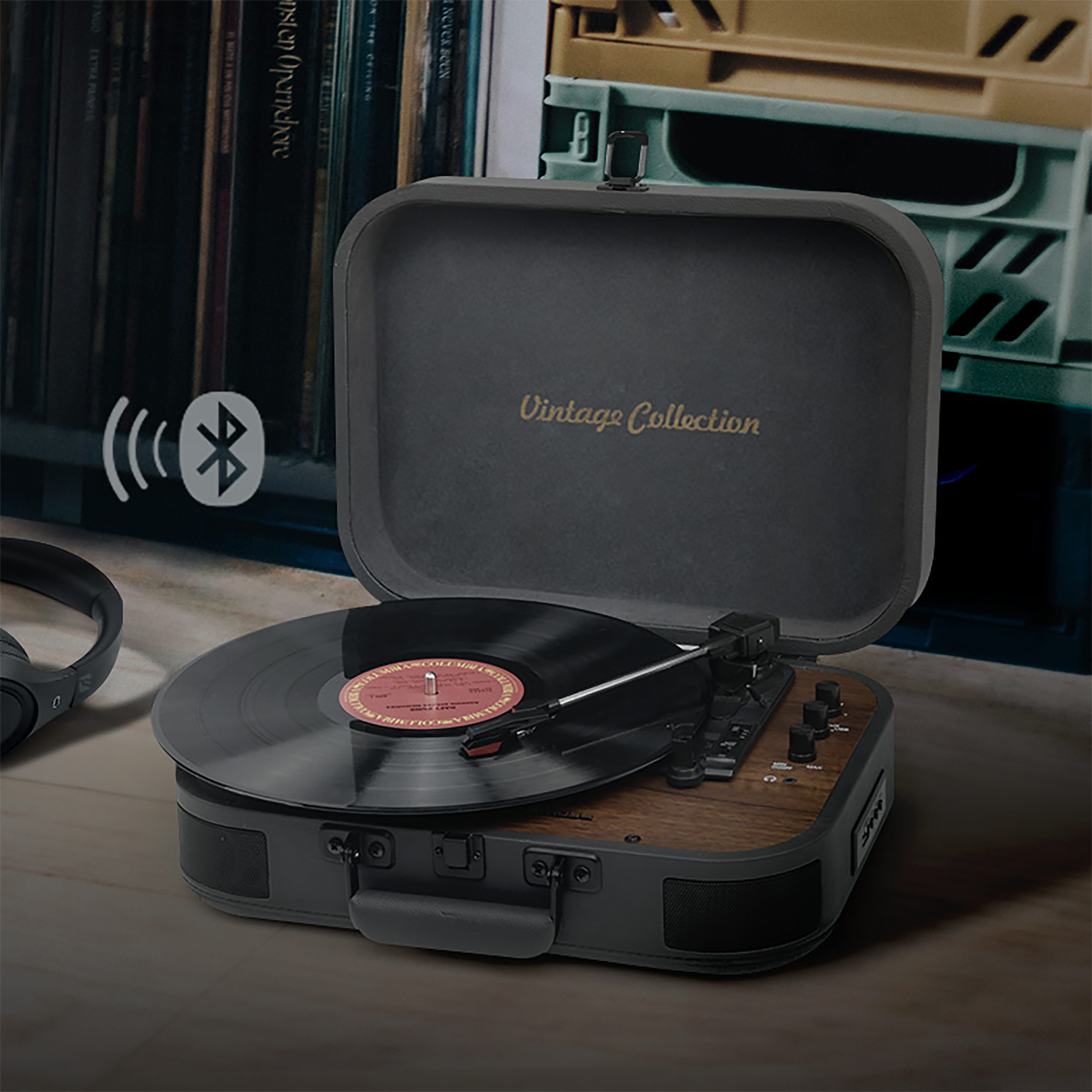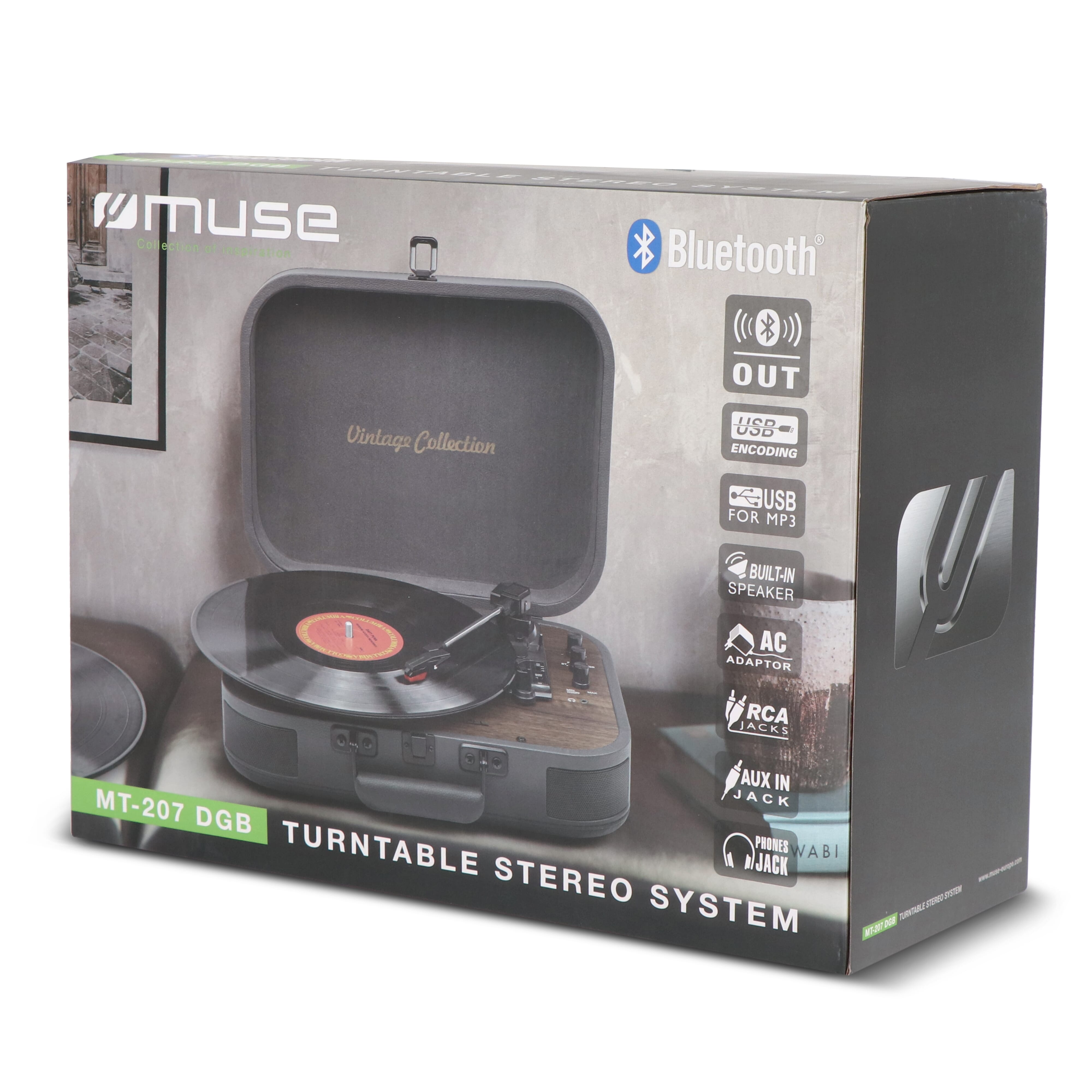 Erleben Sie den nostalgischen Charme von Vinyl mit diesem Muse Suitcase Plattenspieler. Die ideale Kombination aus Vintage und modernem Komfort. Genießen Sie den warmen Klang von Vinyl-Schallplatten. Die eingebauten Lautsprecher liefern einen klaren und ausgewogenen Klang mit einer Ausgangsleistung von 2 x 5 W, ideal für schnelle Hörsessions. Mit der Bluetooth-Out-Funktion können Sie ganz einfach auf kabellose Lautsprecher oder Kopfhörer übertragen, während die USB-Verschlüsselung die Umwandlung Ihrer Lieblingsalben in das digitale MP3-Format erleichtert. Verwandeln Sie jedes Hörerlebnis in eine Vintage-Party.