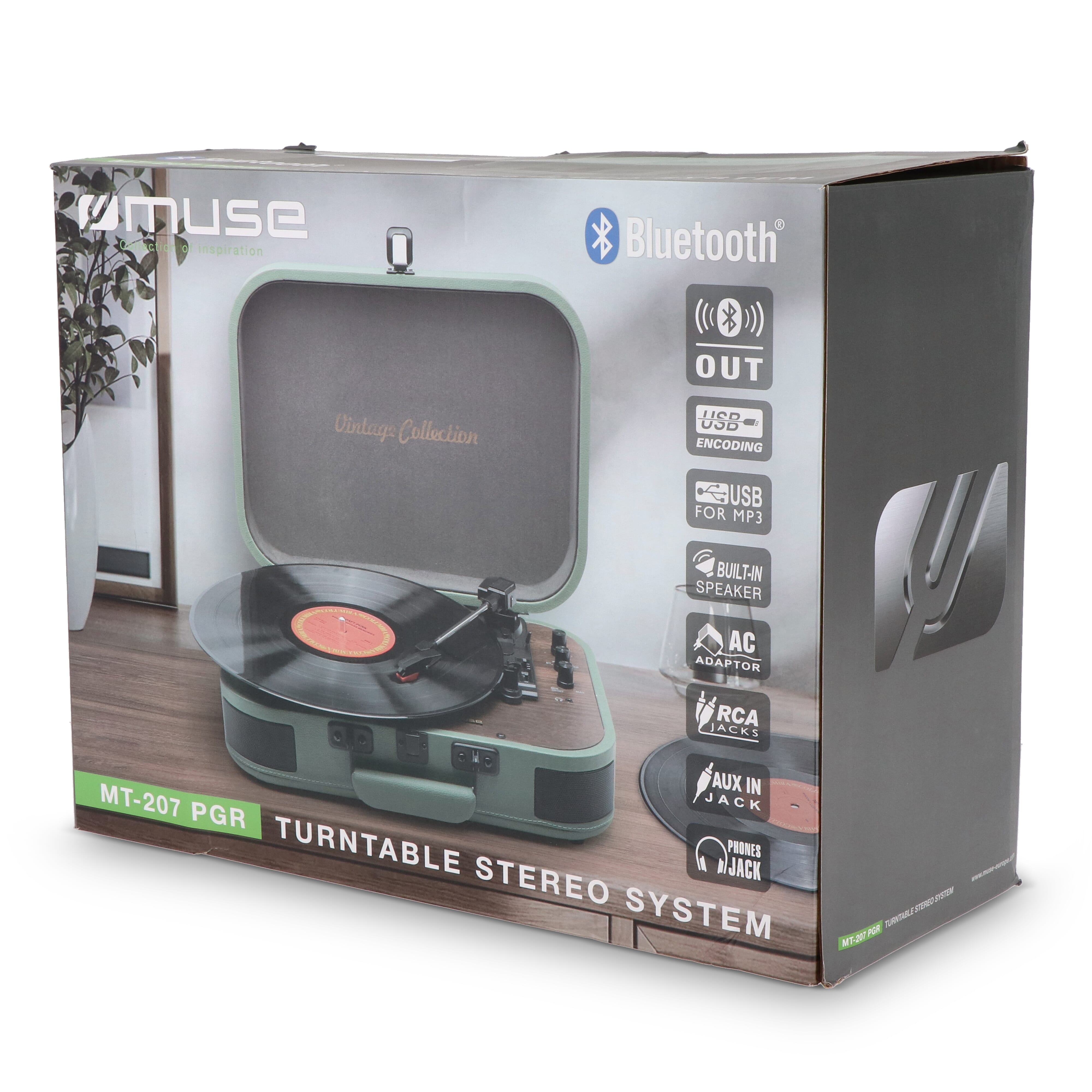 Erleben Sie den nostalgischen Charme von Vinyl mit diesem Muse Suitcase Plattenspieler. Die ideale Kombination aus Vintage und modernem Komfort. Genießen Sie den warmen Klang von Vinyl-Schallplatten. Die eingebauten Lautsprecher liefern einen klaren und ausgewogenen Klang mit einer Ausgangsleistung von 2 x 5 W, ideal für schnelle Hörsessions. Mit der Bluetooth-Out-Funktion können Sie ganz einfach auf kabellose Lautsprecher oder Kopfhörer übertragen, während die USB-Verschlüsselung die Umwandlung Ihrer Lieblingsalben in das digitale MP3-Format erleichtert. Verwandeln Sie jedes Hörerlebnis in eine Vintage-Party.