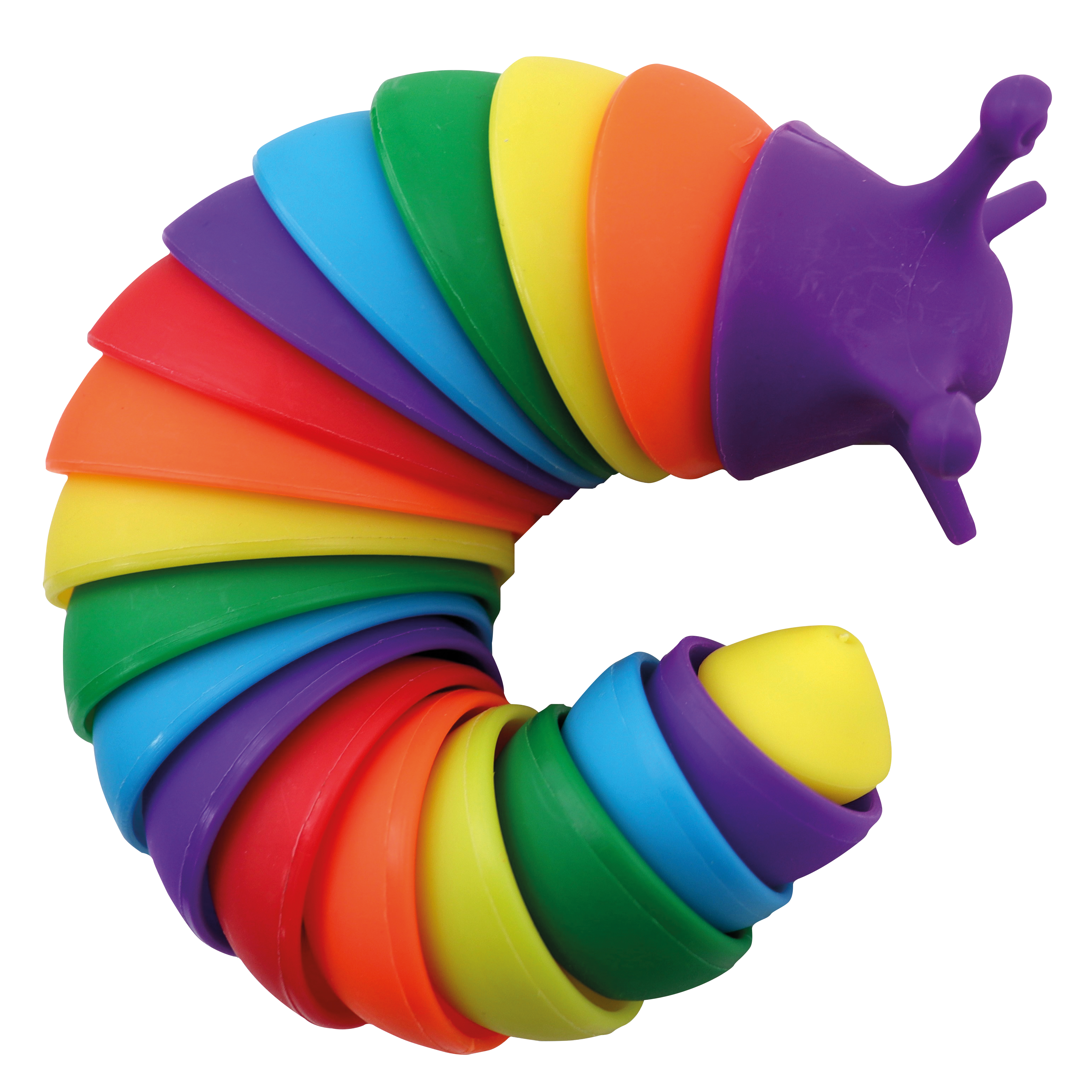 Klapper-Rassel in knalligen Regenbogenfarben! Die flexiblen und beweglichen Teile erzeugen ein lustiges Klick-Klack"-Geräusch! Dieses sensorische Spielzeug kann Stress abbauen sowie Hände und Finger entspannen. Material: PP Kunststoff. "