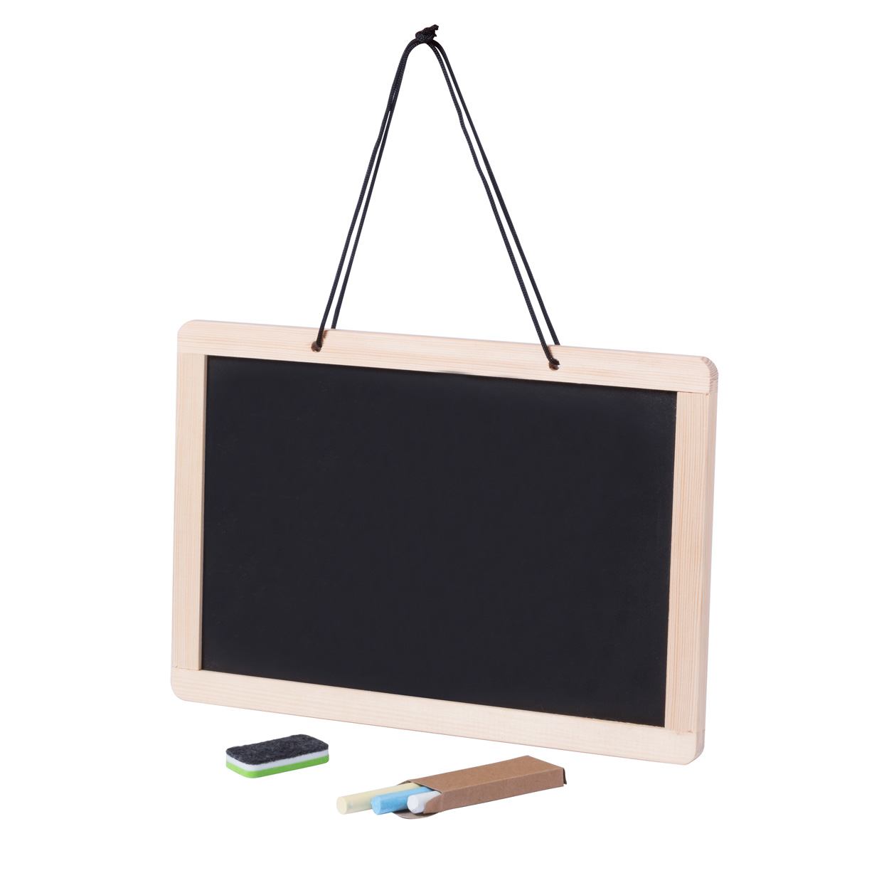 Nachrichten-Tafel mit 2 unterschiedlichen Seiten: schwarze Kreidetafel & weiße Schreibtafel. Inkl. 3 Stk. Kreide, 1 Filzstift und Radierer.