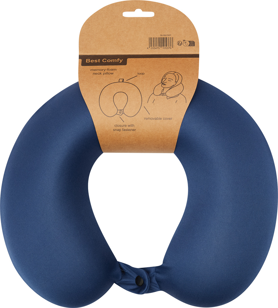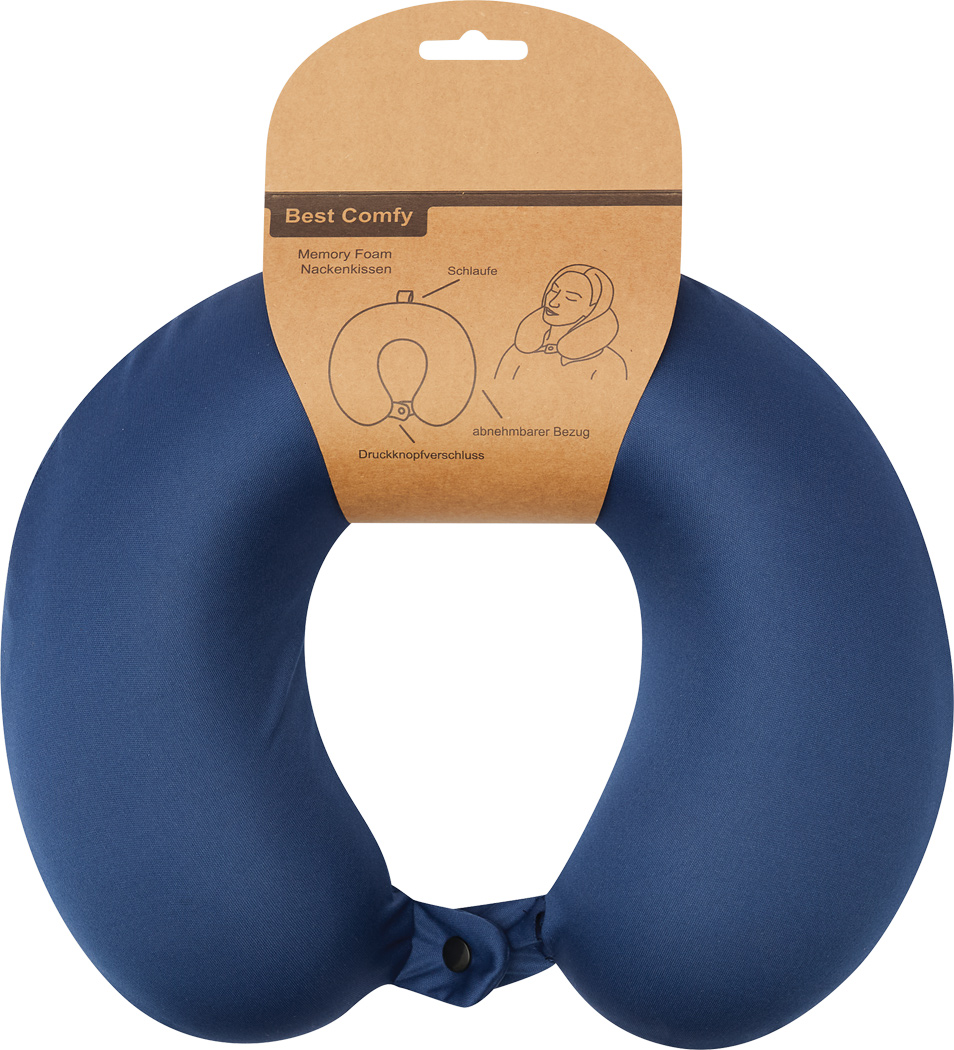 Nackenkissen BEST COMFY: mit Druckknopf verschließbares Nackenhörnchen, abnehmbarer / waschbarer Jersey-Bezug, gefüllt mit Memory-Foam für die optimale Wohlfühlposition, Schlaufe zum Aufhängen bzw. Befestigen während des Transports - ideal als Reise-Schlafkissen, Kopf-, Rücken- und Nackenstütze