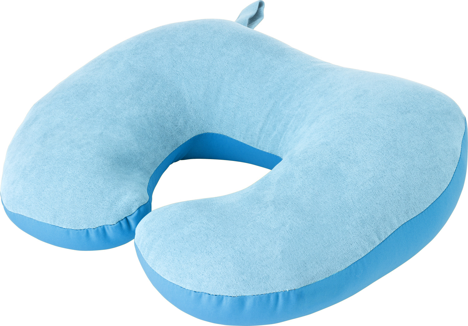 Nackenstütze, zum Kissen faltbar, mit Trageschlaufe und Reißverschluss.