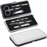 Maniküreset AMELIE, 6-teilig: bestehend aus Nagelschere, Nagelfeile, Pinzette, Nagelschaber, großem und kleinem Nagelknipser, im rechteckigen Etui mit Seitknopfverschluss