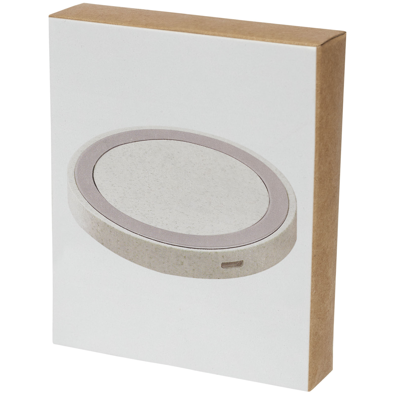 5 W kabelloses Ladepad aus Weizenstroh-Kunststoff, das zusammengemischt wird und die benötigte Kunststoffmenge reduziert. Um ein Gerät ohne drahtlose Technologie aufzuladen, ist ein externer drahtloser Ladeempfänger oder ein Empfängergehäuse erforderlich. Verpackt in einer Geschenkschachtel und wird mit einer Anleitung geliefert (beides aus nachhaltigem Material). Ein Type-C-Ladekabel ist im Lieferumfang enthalten.