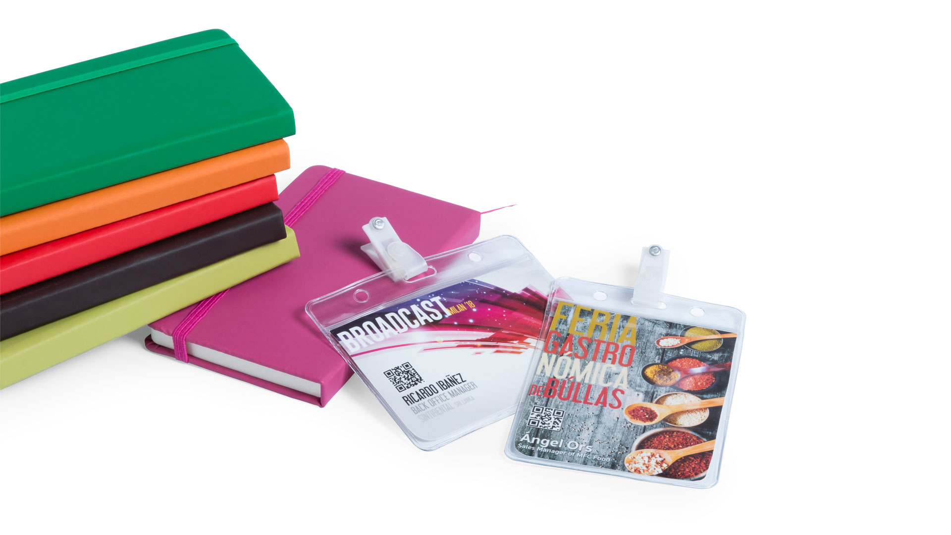 Gestanzter Ausweishalter aus PVC mit Befestigungsclip in Weiß. Erhältlich in horizontaler und vertikaler Ausführung.