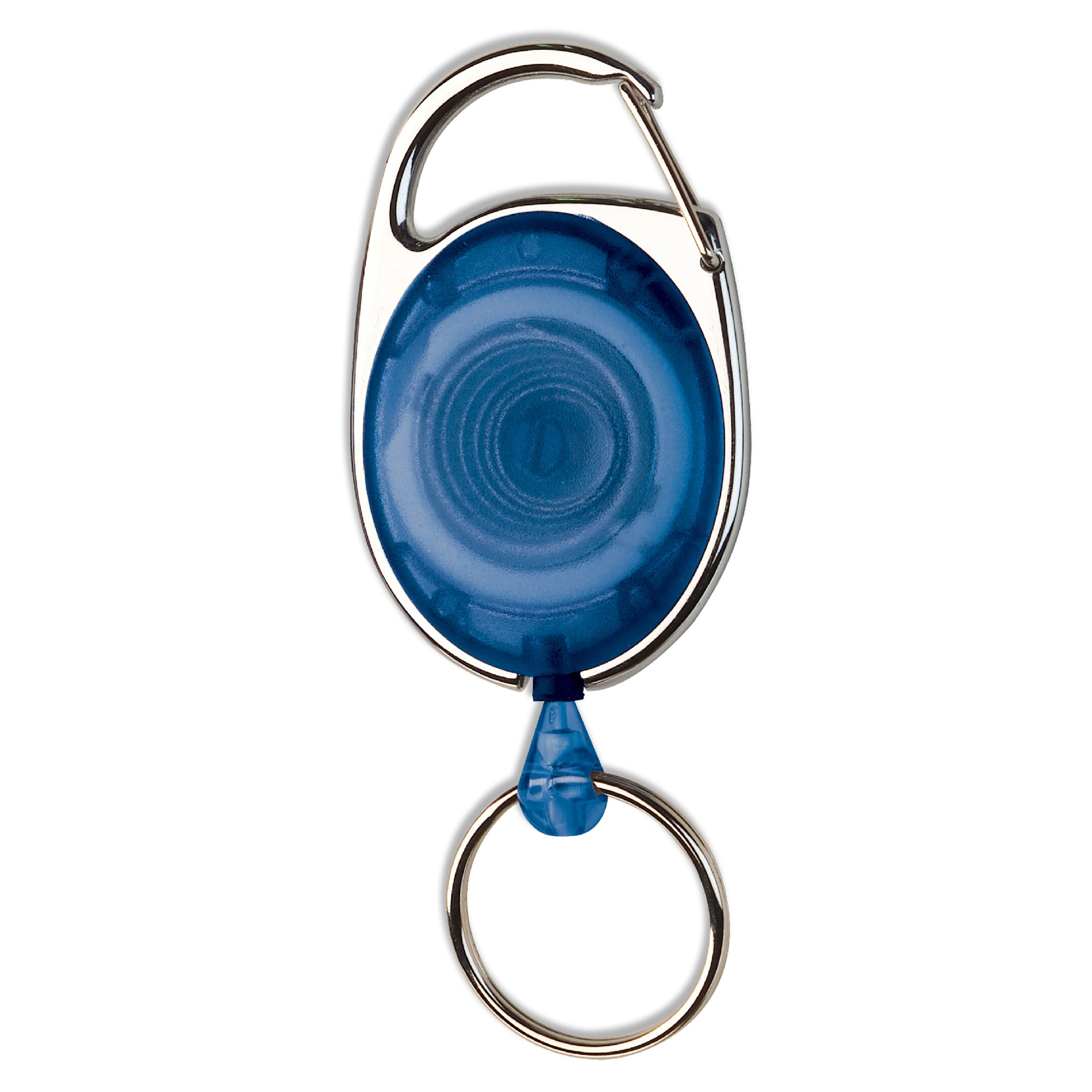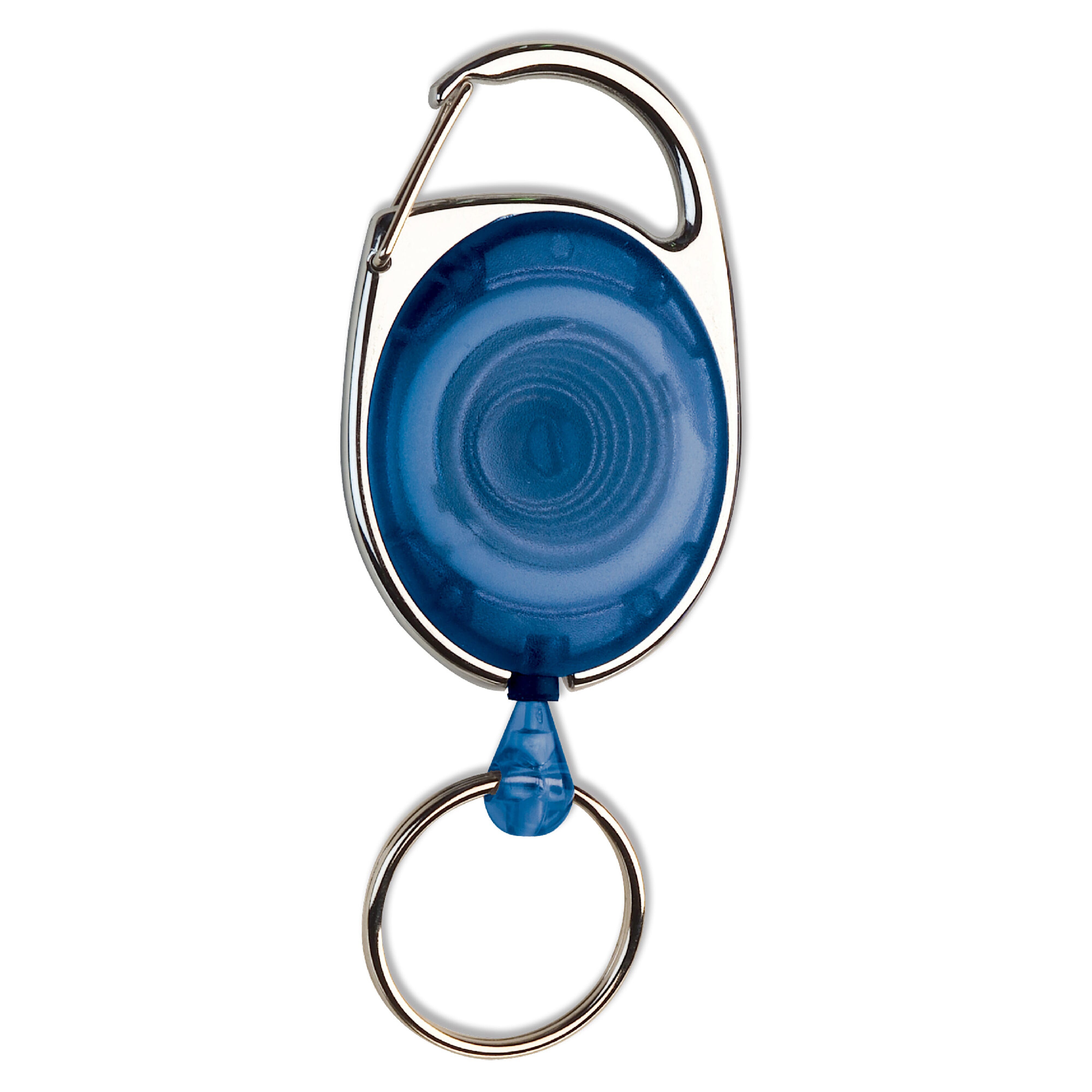 Gefrosteter Namensschildhalter mit Ausziehband (60cm) und Karabinerhaken.