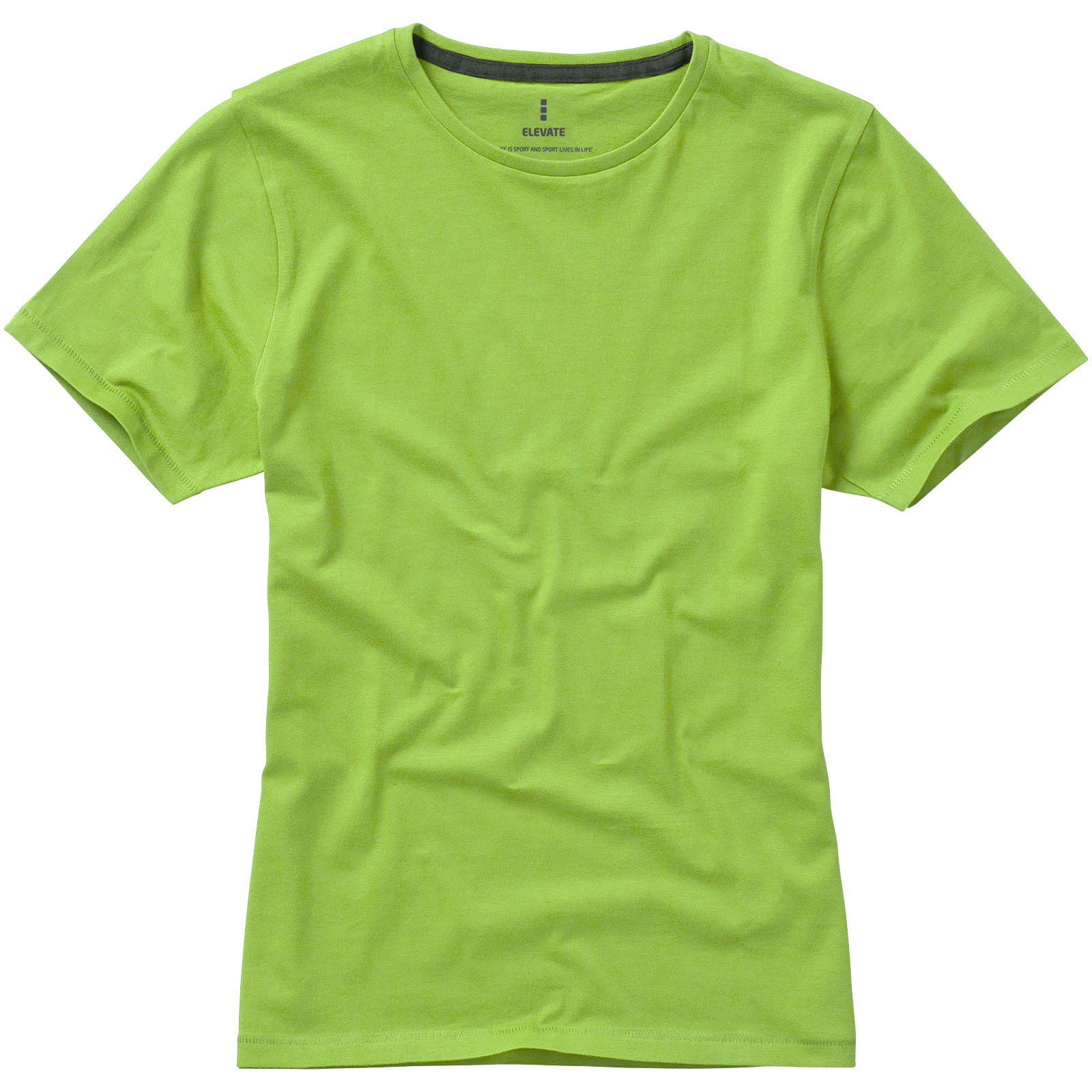 Das kurzärmelige Nanaimo Damen-T-Shirt aus 160 g / m2 Baumwolle ist perfekt für jede Gelegenheit und eine bequeme Ergänzung für jeden Kleiderschrank. Die ringgesponnene Baumwolle sorgt für ein stärkeres und glatteres Garn, was zu einem haltbareren Stoff führt, der ein hochwertiges Branding garantiert. Der feminine Schnitt und die Seitennähte sorgen für eine gute Passform, während das aufgedruckte Elevate-Branding im Nacken für zusätzlichen Komfort sorgt. Die verstärkten Schultern sorgen auch nach längerem Gebrauch für einen kontinuierlichen Sitz.