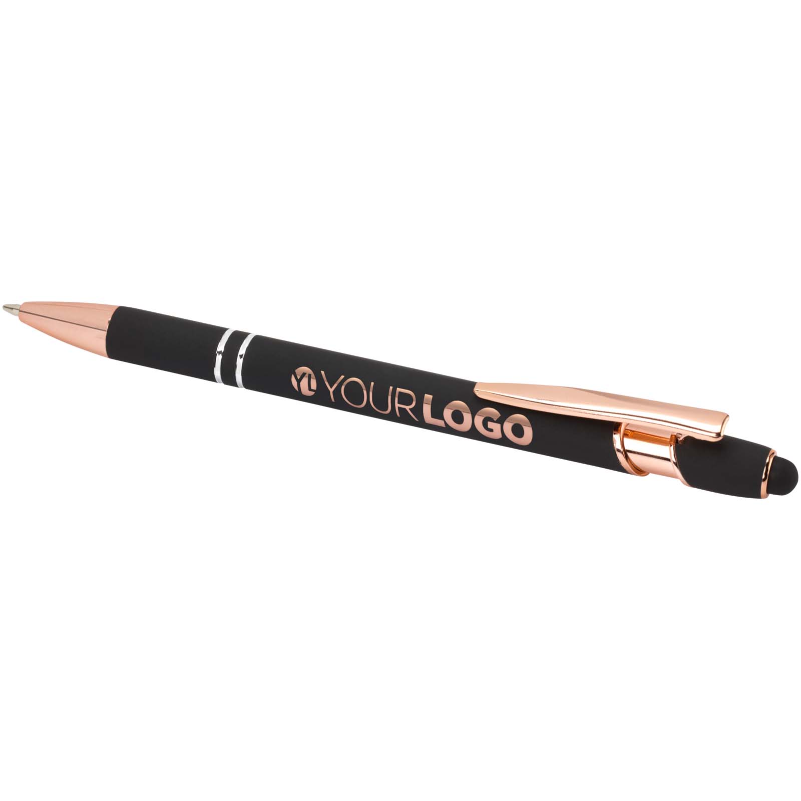 Der Nanna Kugelschreiber in Roségold hat einen Schaft aus recyceltem Aluminium und einen Stylus aus Silikon. Recyceltes Aluminium reduziert die Menge an Deponiemüll, schont die natürlichen Ressourcen und reduziert die Treibhausgasemissionen. Tintenfarbe: Schwarz. Schreiblänge: 800 Meter. Schreibspitze: 1 mm.