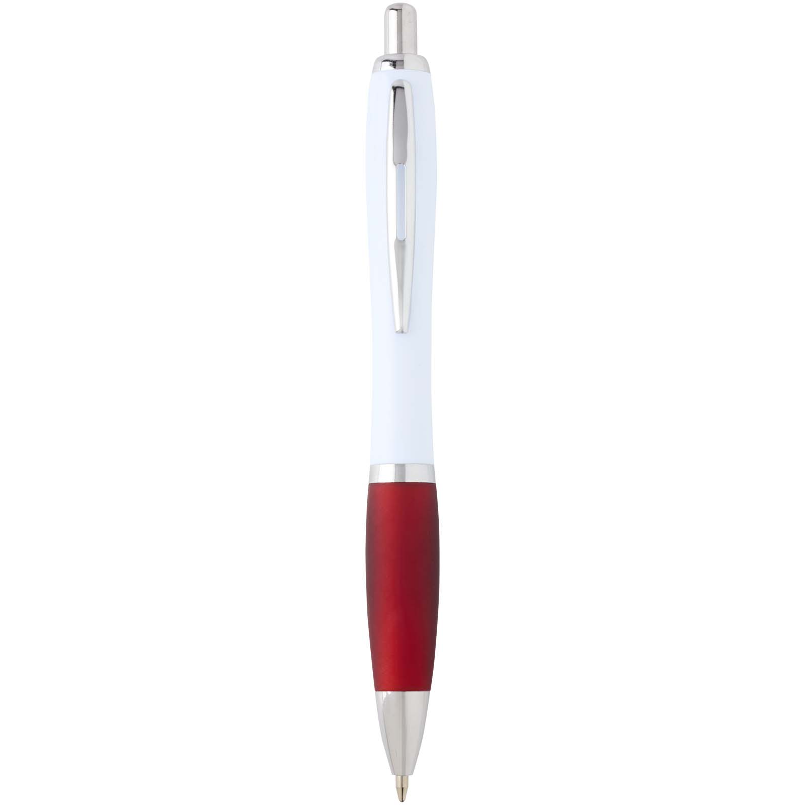 Der Nash Kugelschreiber besitzt ein elegantes, geschwungenes Design und einen weichen Griff. Er besteht aus recyceltem Kunststoff, der hart und stabil ist und dadurch eine lange Lebensdauer hat. Tintenfarbe: Blau. Schreiblänge: 1000 Meter. Schreibspitze: 1 mm.