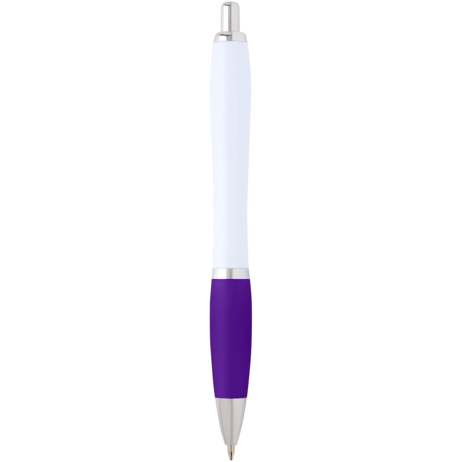 Der Nash Kugelschreiber besitzt ein elegantes, geschwungenes Design und einen weichen Griff. Er besteht aus recyceltem Kunststoff, der hart und stabil ist und dadurch eine lange Lebensdauer hat. Tintenfarbe: Blau. Schreiblänge: 1000 Meter. Schreibspitze: 1 mm.