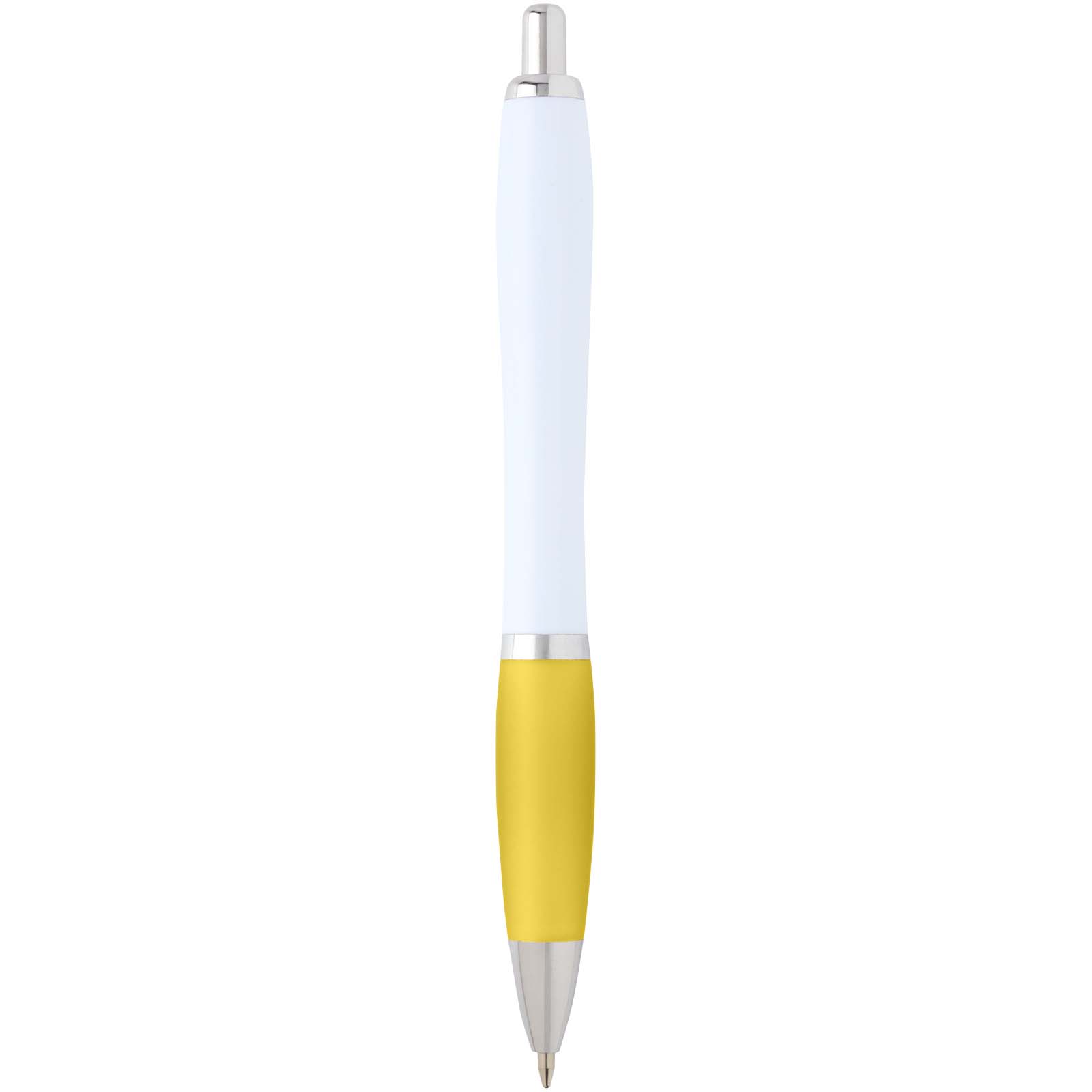 Der Nash Kugelschreiber besitzt ein elegantes, geschwungenes Design und einen weichen Griff. Er besteht aus recyceltem Kunststoff, der hart und stabil ist und dadurch eine lange Lebensdauer hat. Tintenfarbe: Schwarz. Schreiblänge: 1000 Meter. Schreibspitze: 1 mm.