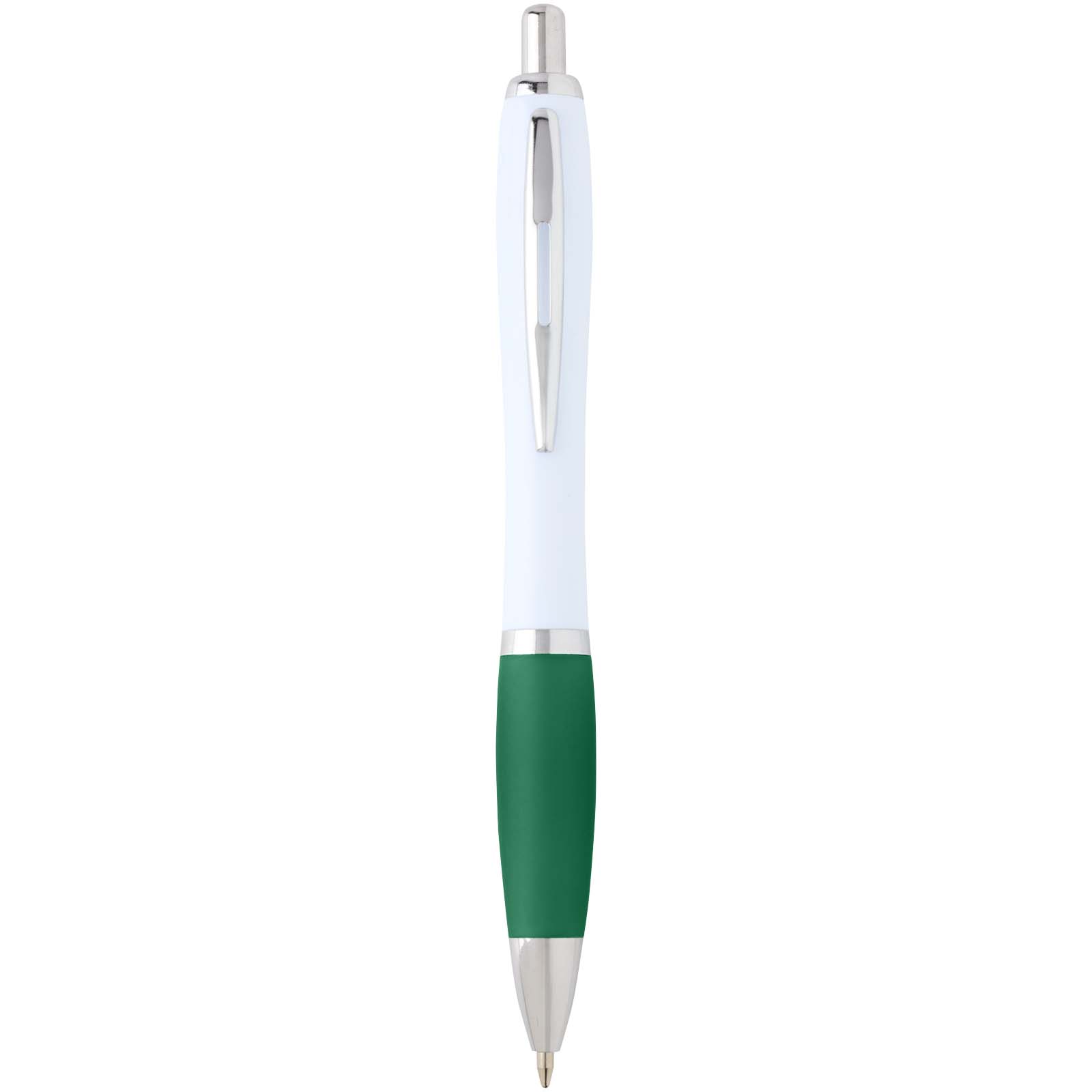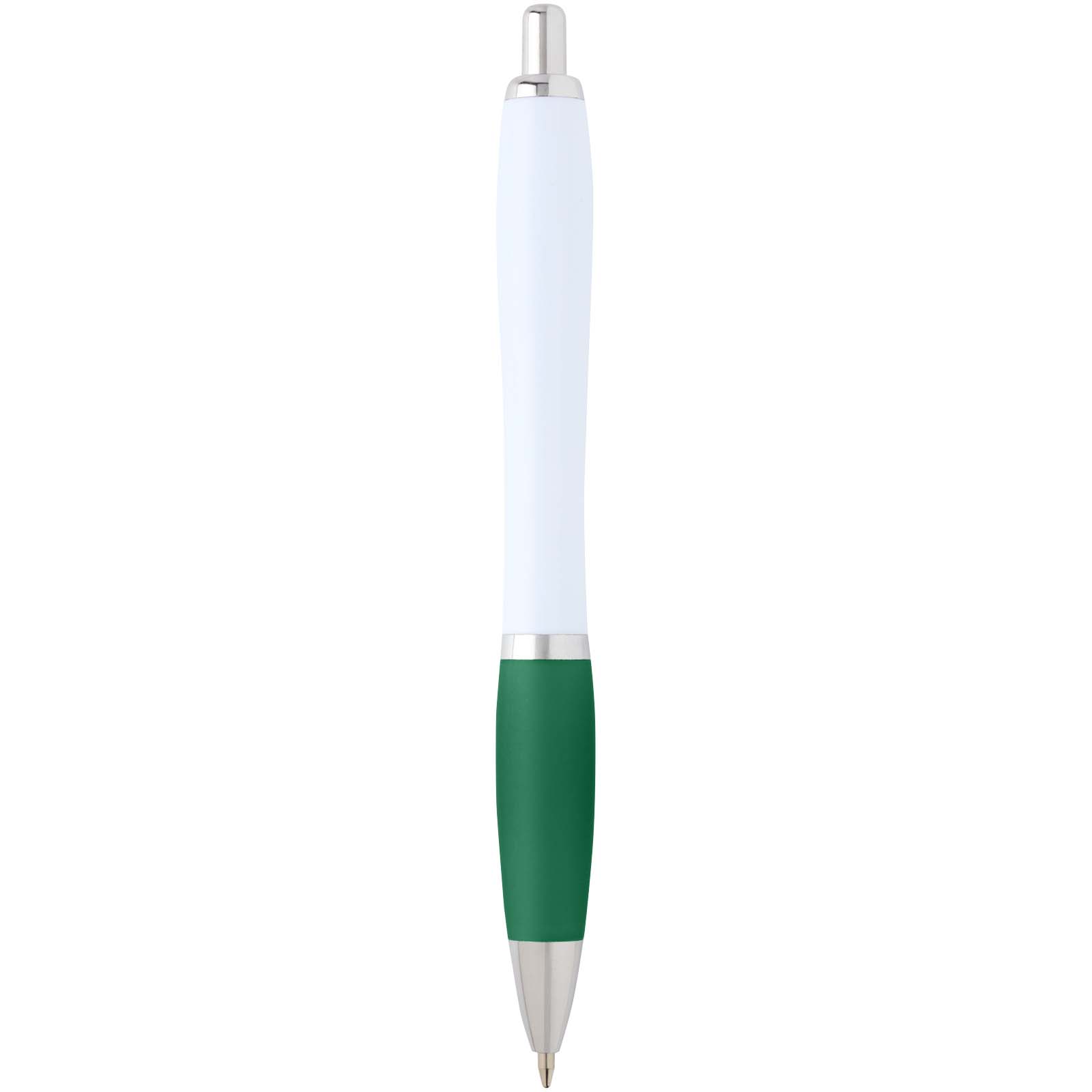Der Nash Kugelschreiber besitzt ein elegantes, geschwungenes Design und einen weichen Griff. Er besteht aus recyceltem Kunststoff, der hart und stabil ist und dadurch eine lange Lebensdauer hat. Tintenfarbe: Schwarz. Schreiblänge: 1000 Meter. Schreibspitze: 1 mm.