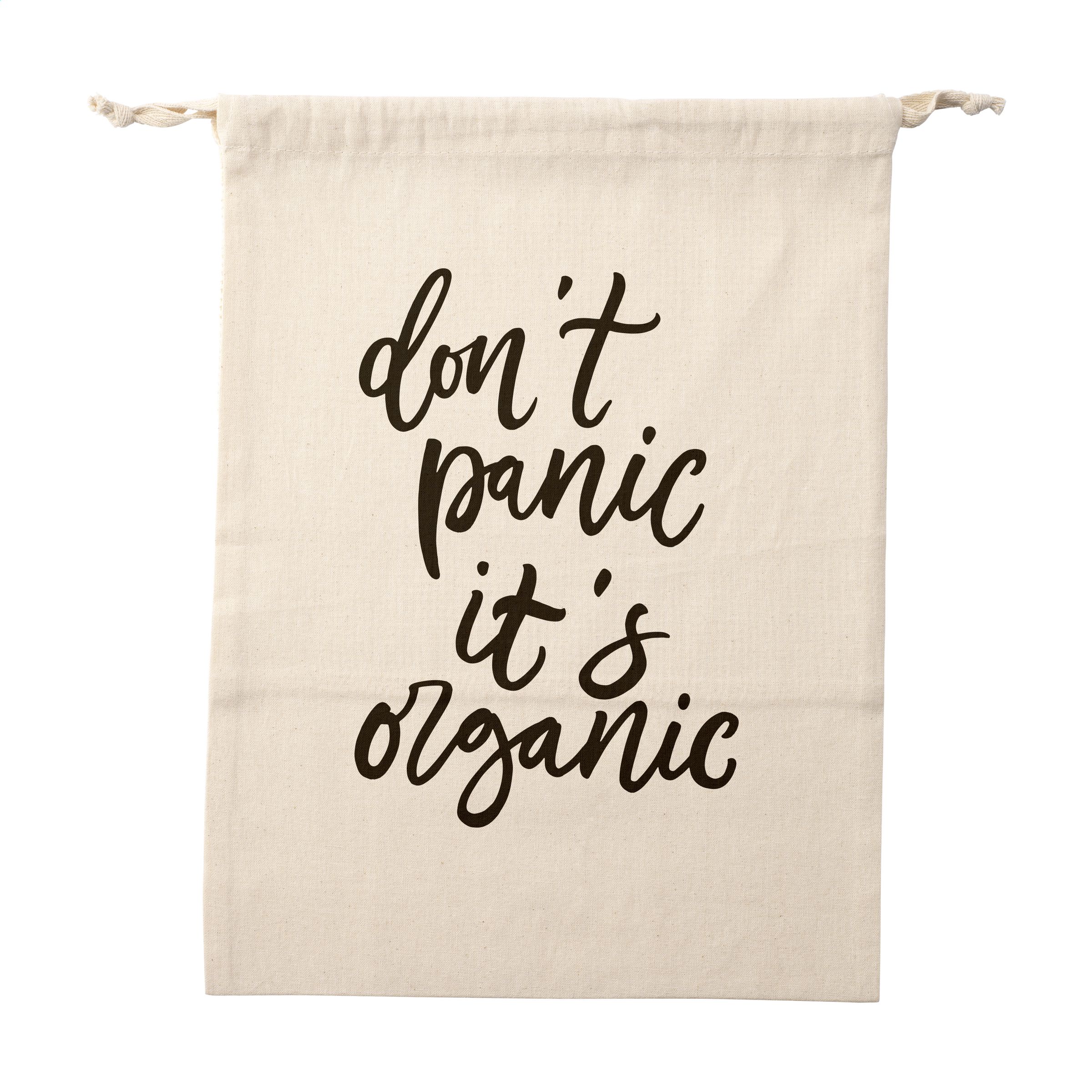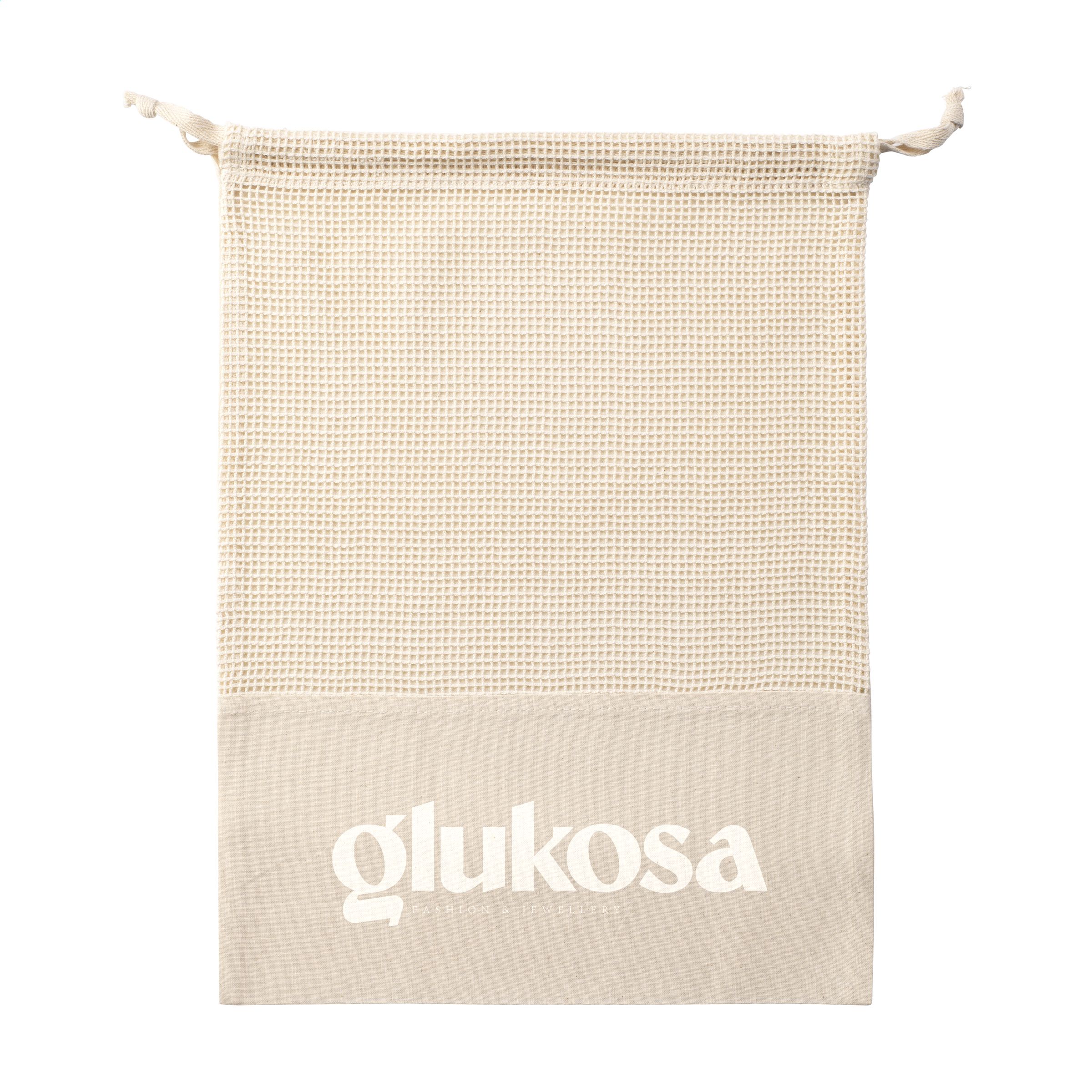 WoW! Wiederverwendbarer Obst- und Gemüsebeutel aus 100% Bio-Baumwolle (120 g / m²). Vorderseite aus Baumwoll-Mesh und Rückseite aus einfarbiger Baumwolle. Mit praktischem Kordelzugverschluss. Die Verwendung dieses Beutels ist ein Beitrag zur Reduzierung von Plastiktüten im Supermarkt. GOTS-zertifiziert. Fassungsvermögen ca. 1,5 Liter.