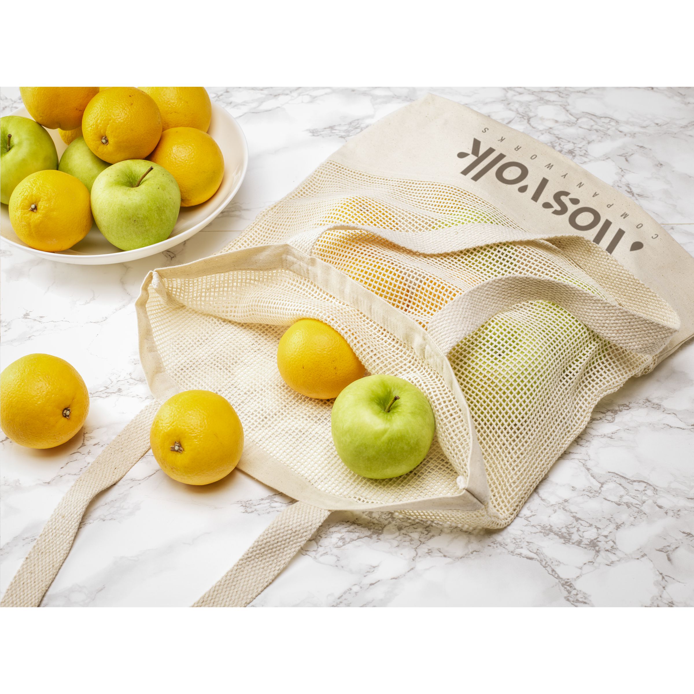 WoW! Robuster Mesh-Shopper aus 100% Baumwolle in Bio-Qualität (180 g / m²). Mit stabilem gewebtem Boden und langen Tragegriffen. Fassungsvermögen ca. 12 Liter.
