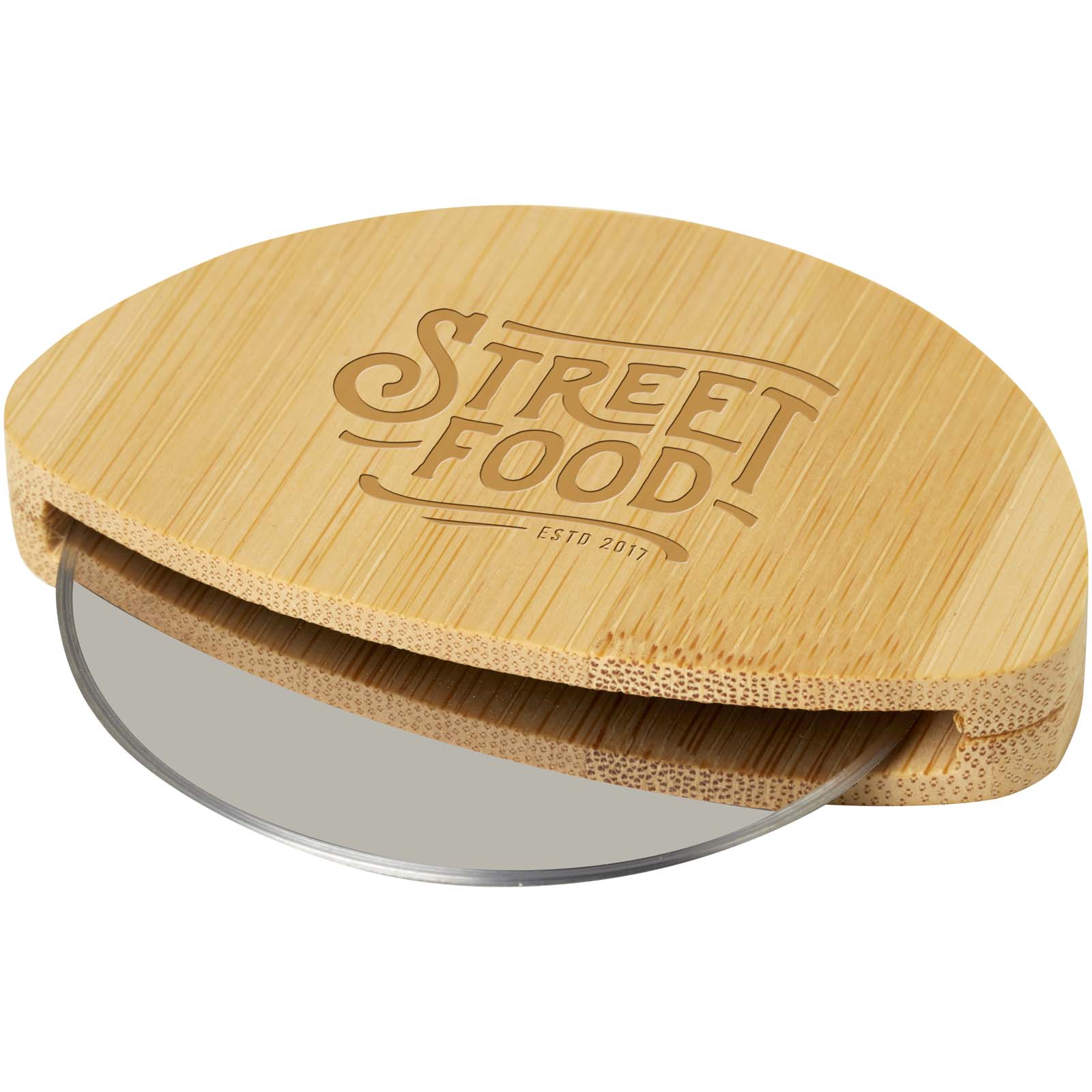 Pizzaschneider mit Bambusgriff und Edelstahlklinge.