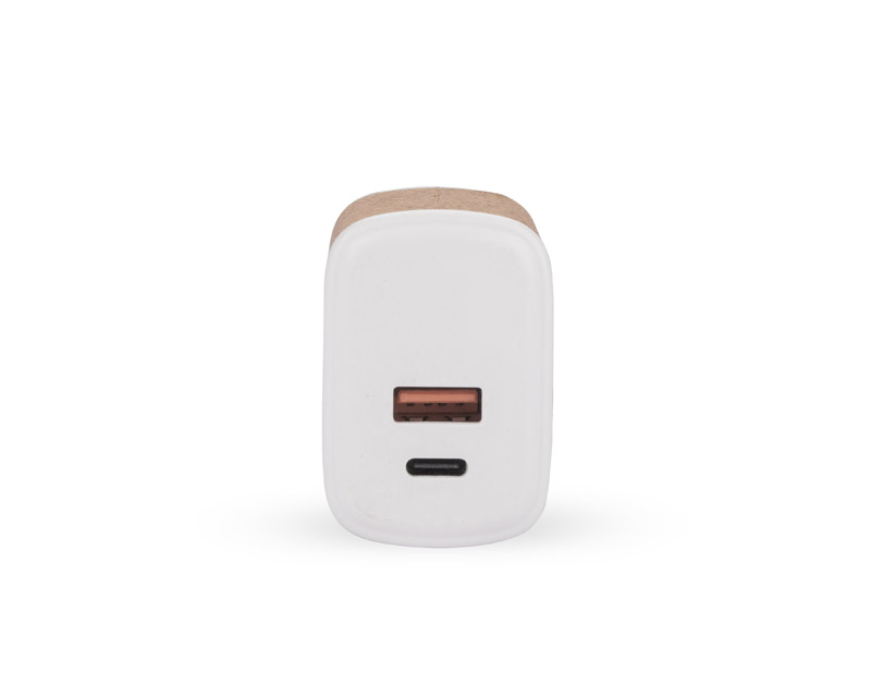 Das BLOSETO-Netzladegerät ist ein praktisches Gadget, mit dem Sie mobile Geräte über den integrierten USB-A-Anschluss und den Typ-C-Anschluss aufladen können. Das Ladegerät verfügt über eine Schnellfunktion im QC 3.0-Standard. 20-W-Ladevorgang. Es ist mit Kork veredelt, was ihm ein einzigartiges Aussehen verleiht.