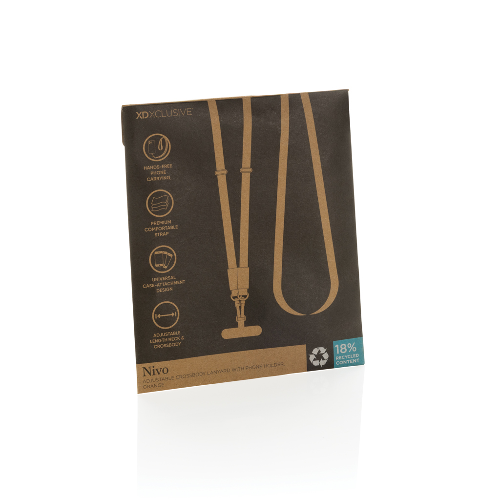 Nivo ist ein universelles Crossbody-Handyband, das Ihr Gerät sicher und immer griffbereit hält. Nivo besteht aus recyceltem PET mit hochwertigen Aluminiumdetails und verbindet Langlebigkeit mit einem klaren, modernen Look. Der dicke, hochwertige Gurt ist auf maximalen Tragekomfort ausgelegt und somit ideal für den täglichen Gebrauch. Dank seines universellen und robusten Designs eignet er sich für jedes Smartphone mit Schutzhülle. Nivo kann bequem um den Hals oder als Umhängegurt getragen werden und bietet Ihnen so überall vollständige Freiheit, Ihre Hände zu benutzen. Der verstellbare Gurt lässt sich leicht von 200cm bis 120cm einstellen und sorgt so für eine perfekte Passform für jeden Benutzer und jeden Tragestil. Hergestellt aus RCS-zertifiziert (Recycled Claim Standard) recyceltem PET und recyceltem Aluminium. Der Gesamtanteil an recycelten Materialien beträgt 18% des Gesamtgewichts des Artikels. PVC-frei und verpackt in einer plastikfreien FSC-Verpackung.
