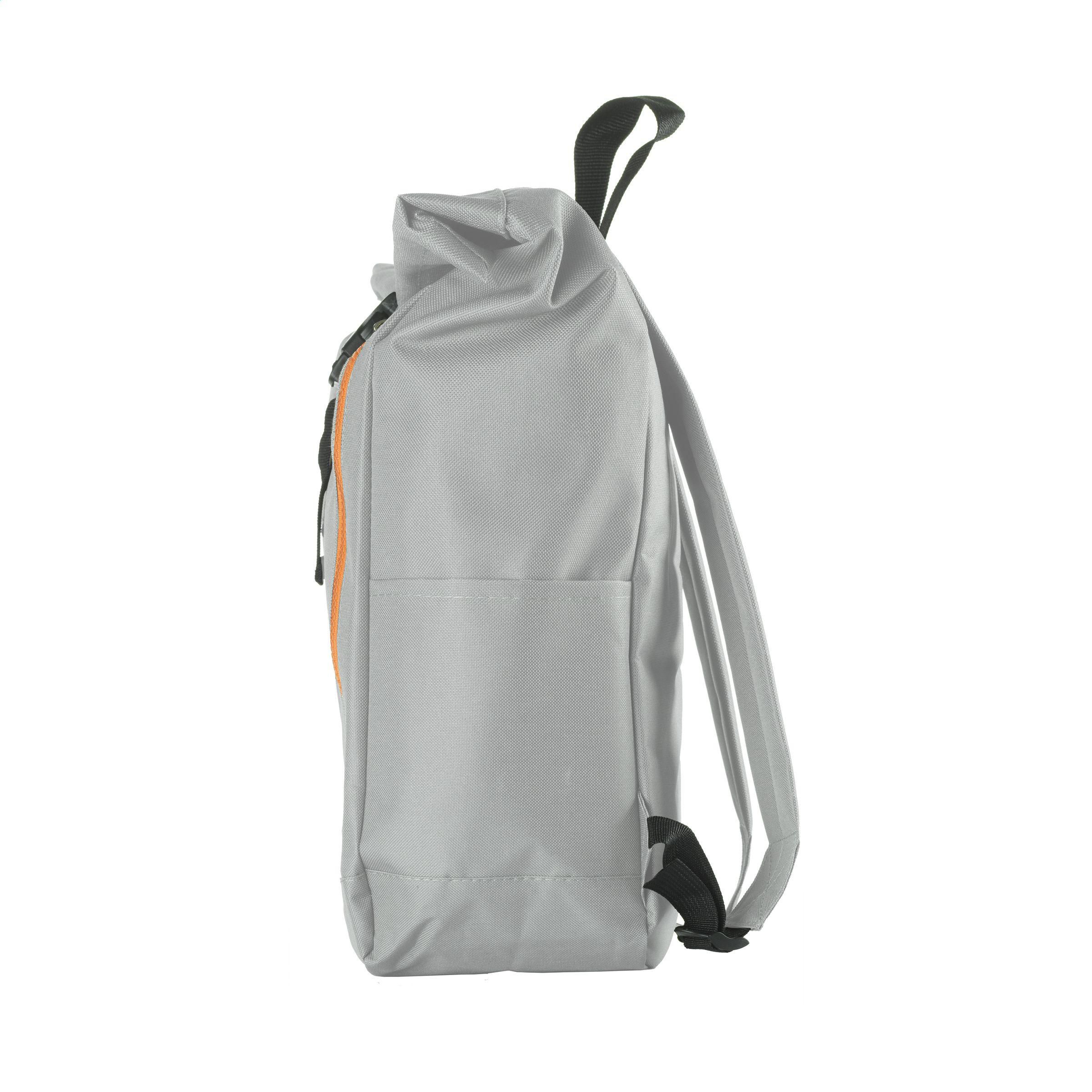 Robuster, praktischer Rucksack aus starkem 600D-Polyester mit wasserfester PVC-Innenseite, teilweise mit Nylon gefüttert. Der Rucksack hat ein großes Innenfach, ein Einsteckfach an beiden Seiten und ein großes Reißverschlussfach an der Vorderseite. Mit Schaumstoff an der Rückseite für mehr Tragekomfort, gepolsterten, verstellbaren Schultergurten und Trageschlaufe. Mit Trageschlaufe, Rollverschluss und praktischem Klicksystem. Der perfekte Rucksack für den täglichen Gebrauch. Fassungsvermögen: ca. 18 Liter.