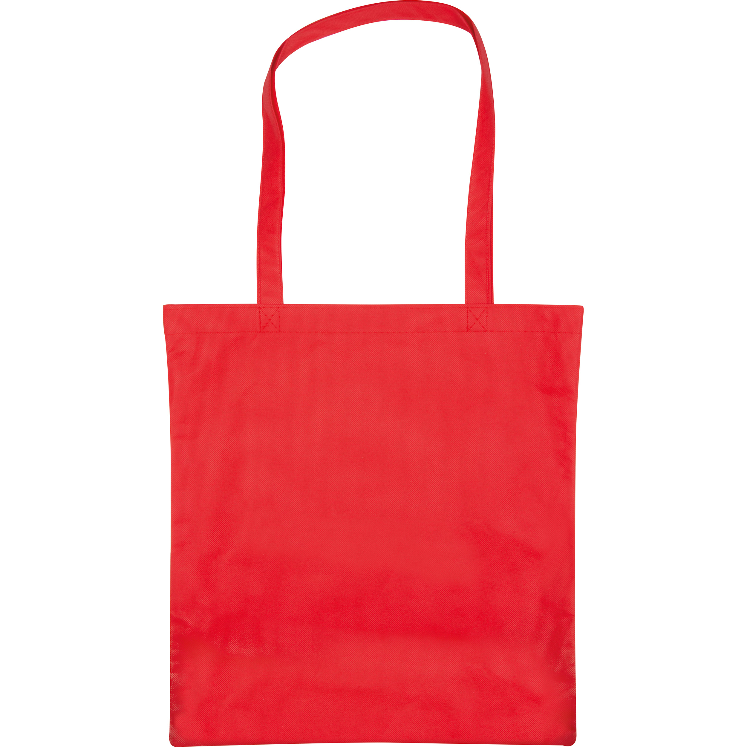 Große Non Woven Einkaufstasche (Grammatur 80g / m²) in vielen verschiedenen Farben mit langen Tragehenkeln, die mit einer Kreuznaht fest an der Tasche angebracht sind. Der Werbeaufdruck erfolgt auf einer Seite.