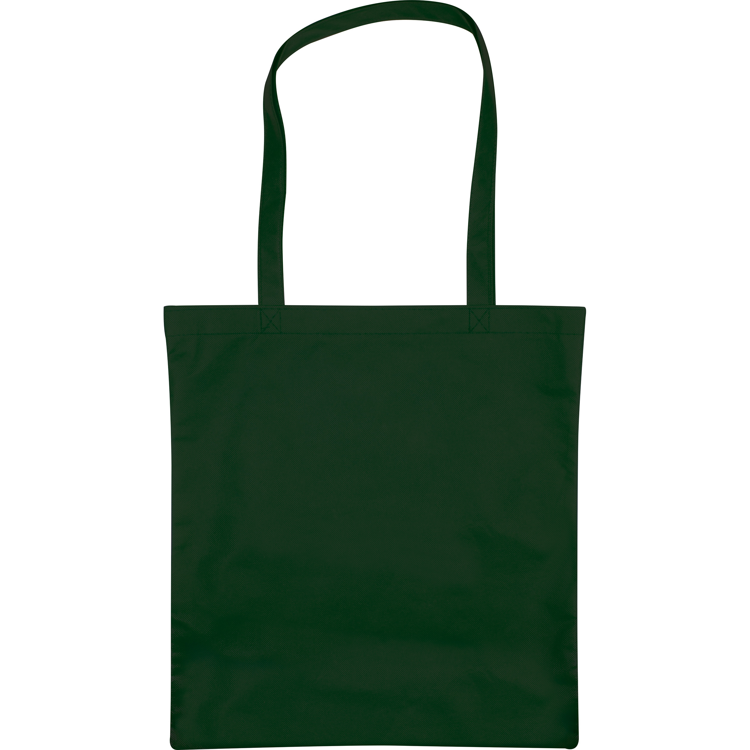 Große Non Woven Einkaufstasche (Grammatur 80g / m²) in vielen verschiedenen Farben mit langen Tragehenkeln, die mit einer Kreuznaht fest an der Tasche angebracht sind. Der Werbeaufdruck erfolgt auf einer Seite.